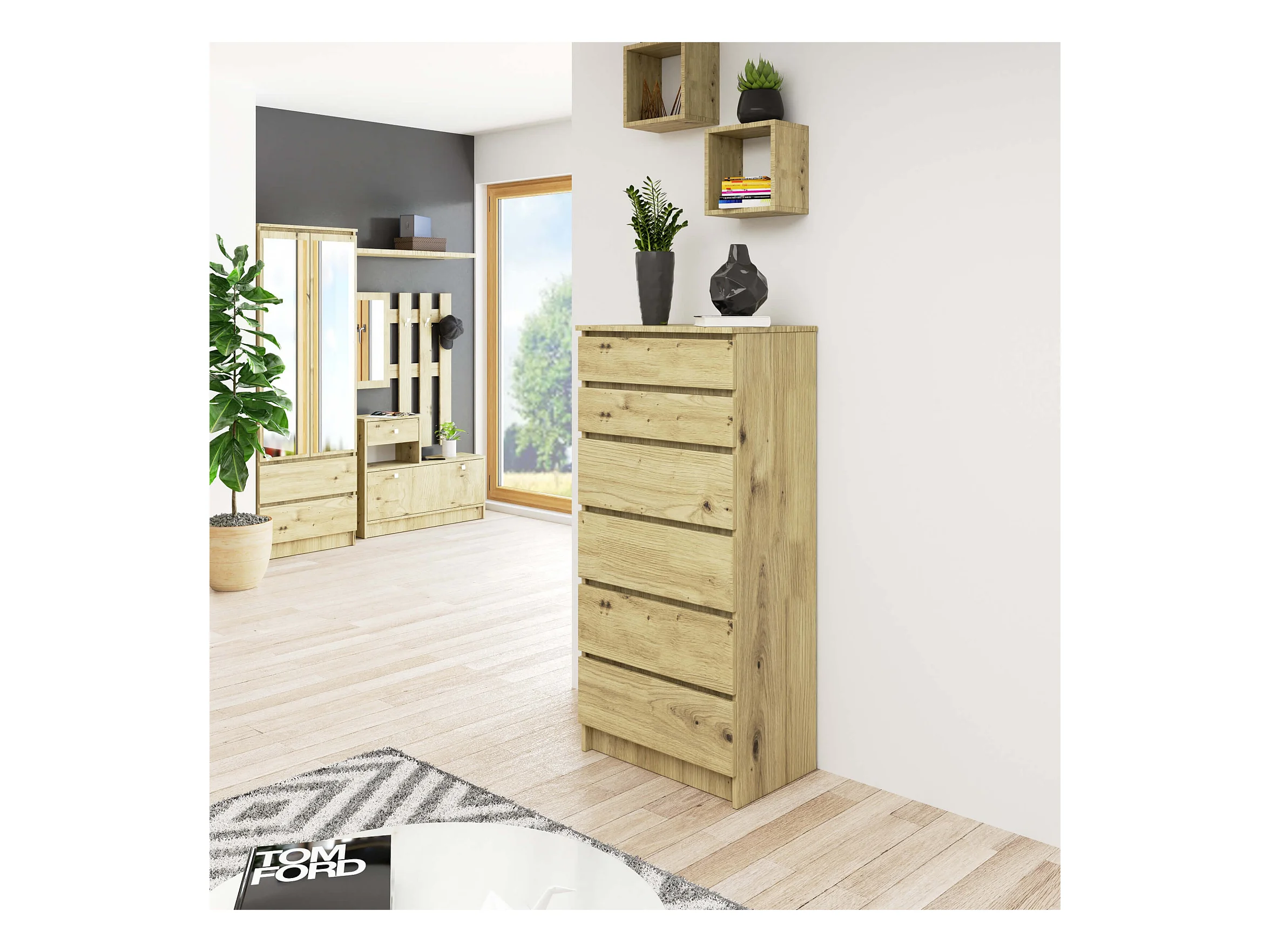 Cómoda AKORD K60 Roble Artisan 60 cm 6 cajones frente en color Roble Artisan 60x40x130 cm