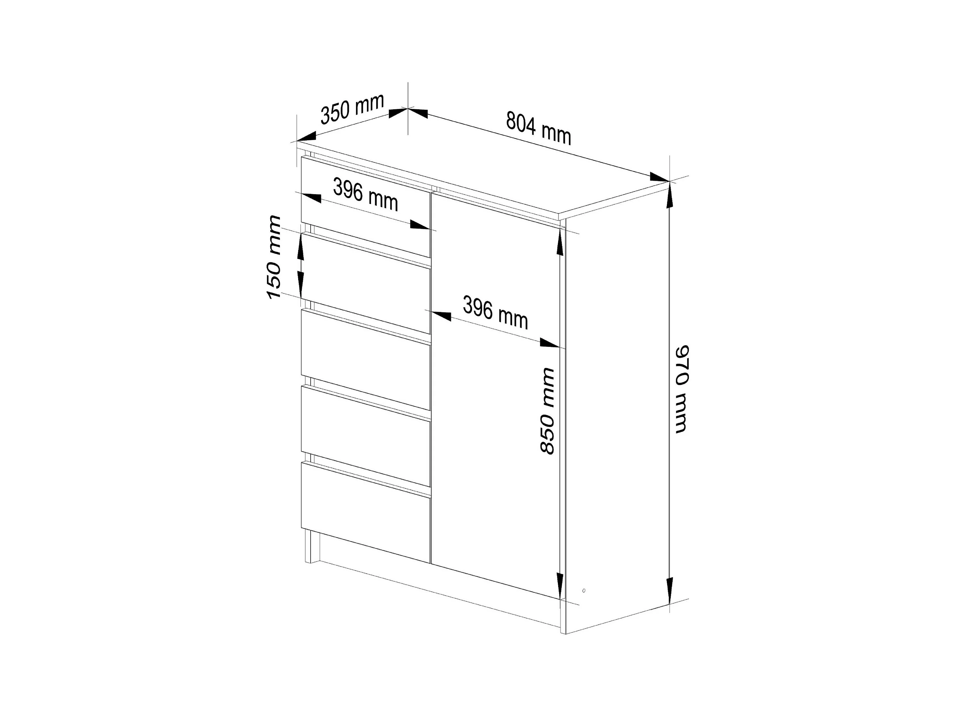 Cómoda AKORD K80 Blanco 80 cm 1 puerta 5 cajones 80x35x97 cm