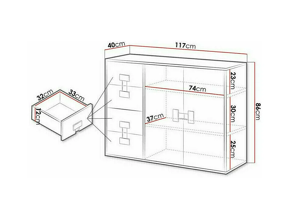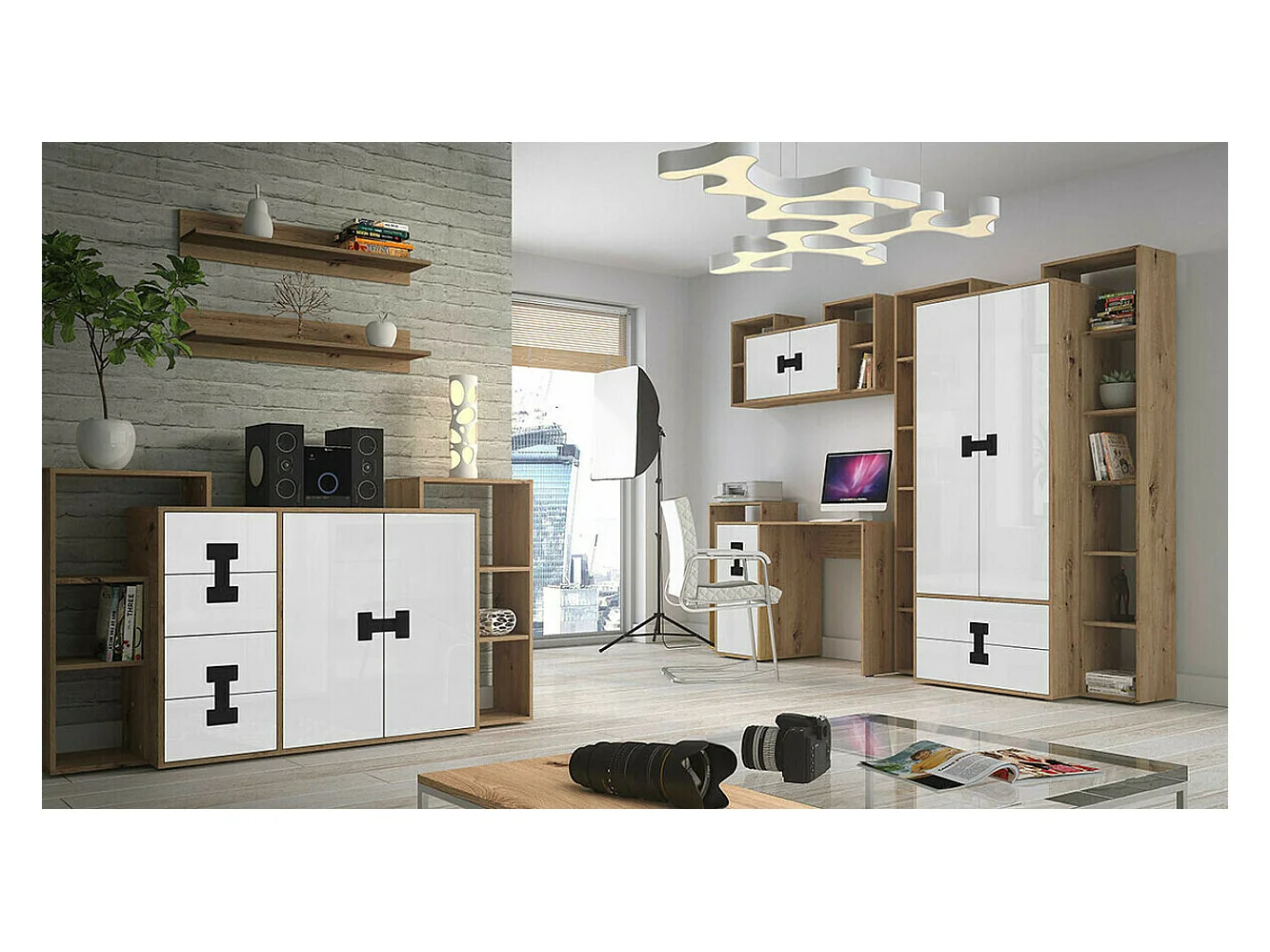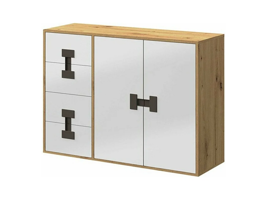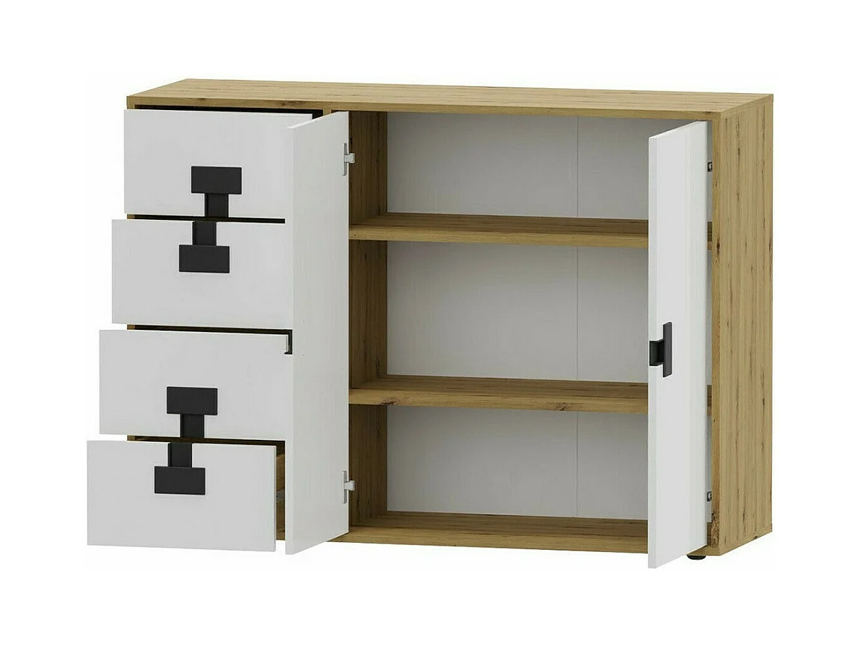 Cómoda Florevi 102, Roble Artisan|Blanco brillante, Con cajones y puertas, 86x117x40cm