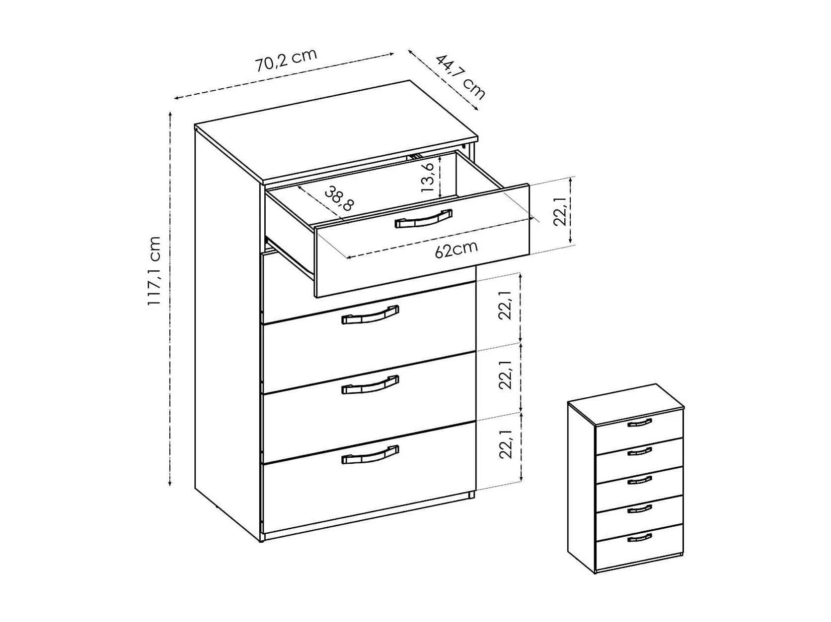 Cómoda Vasa 5 cajones natural 117,1x70,2x44,7 cm