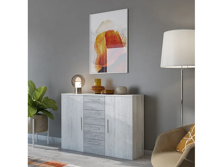 Cómoda aparador de madera blanca con 4 cajones y 2 puertas para dormitorio Forsy