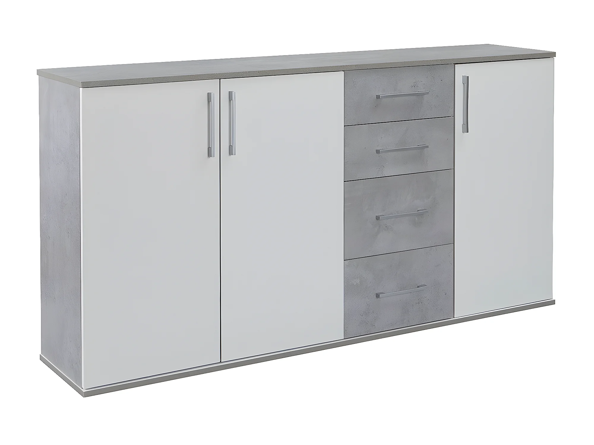 Comoda Aparador Joana 3 Puertas y 4 Cajones Blanco y Cemento 160x82 cm