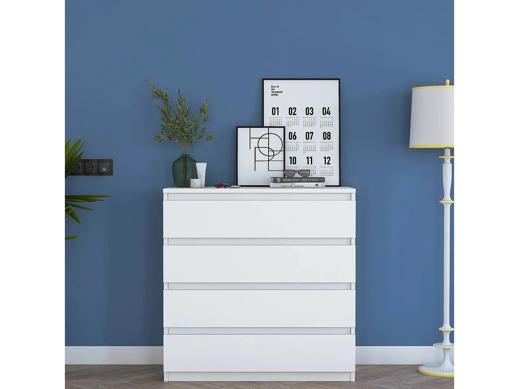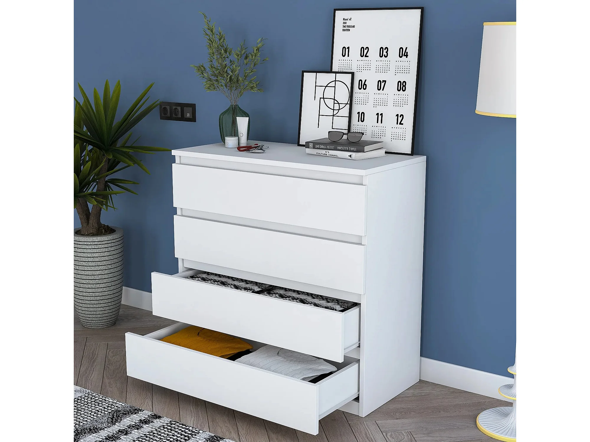 Cómoda AKORD JERRY Blanco 80 cm 1 puerta 3 cajones frente en color Blanco 2 estantes 80x35x77 cm