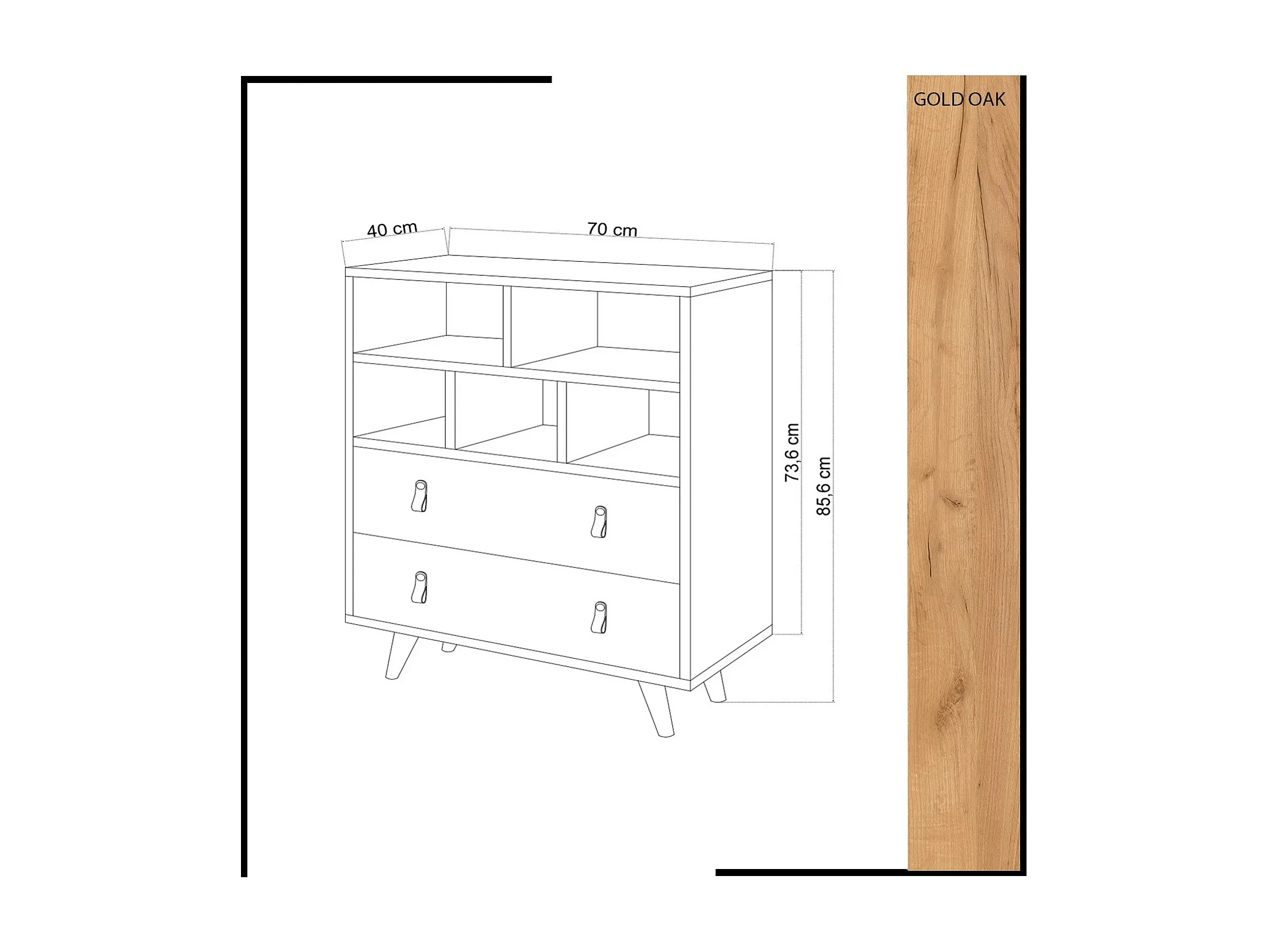 Cómoda Beggu color roble Blanco 70x40x85.6 cm