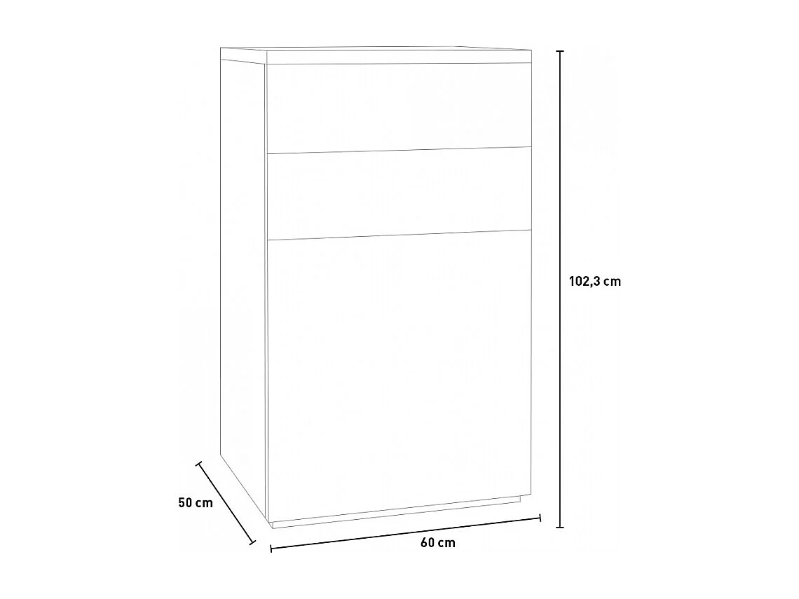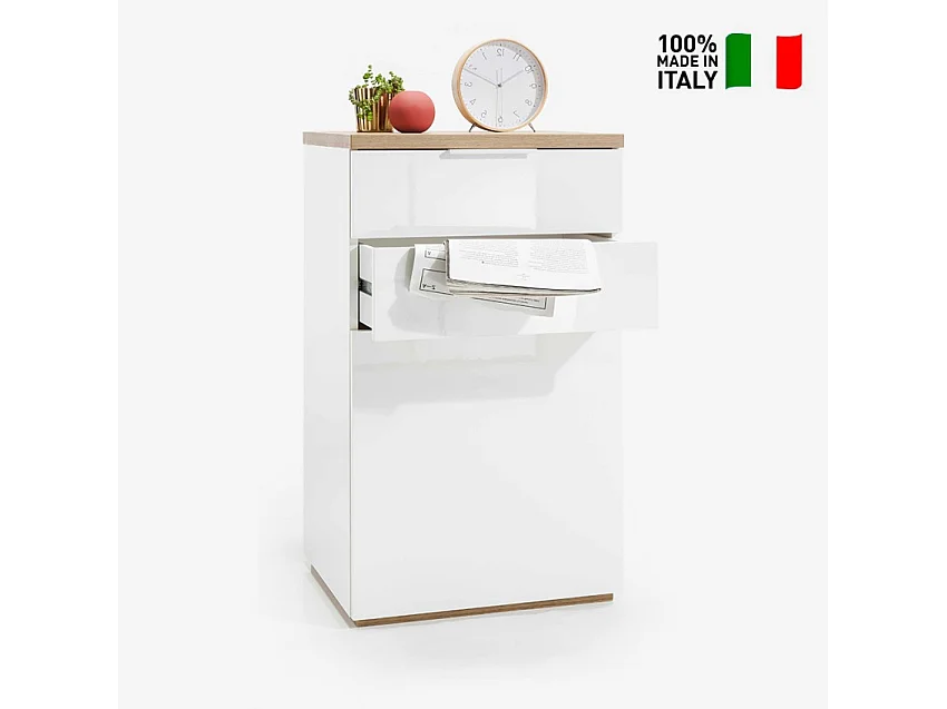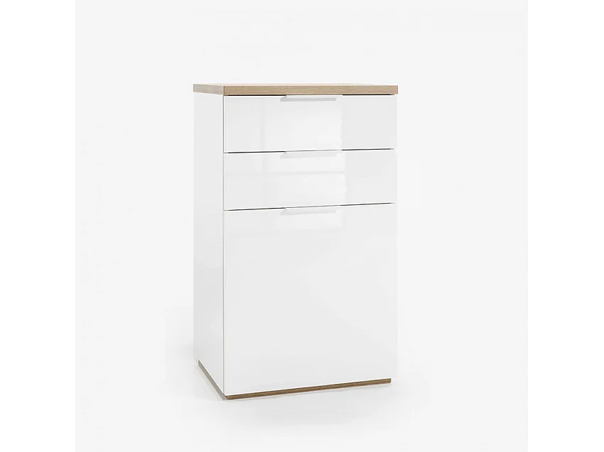 Cómoda Blanca Lúcida 2 Cajones Y 1 Puerta Con Base De Roble Natural