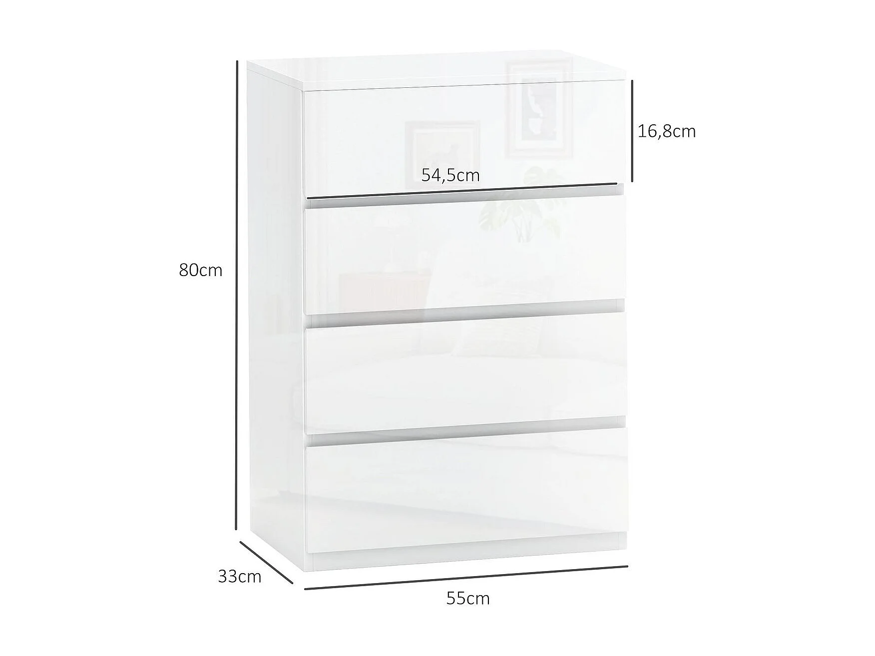 Cómoda Bromelia Homcom 4 cajones blanco brillo 80x55x33 cm