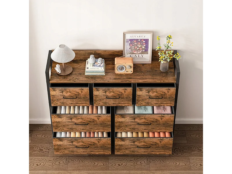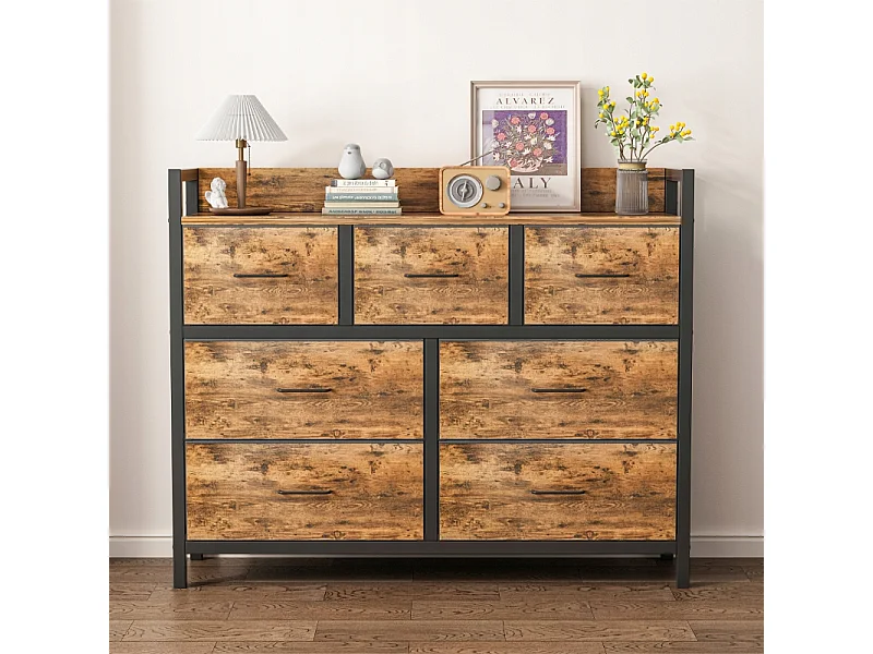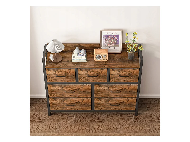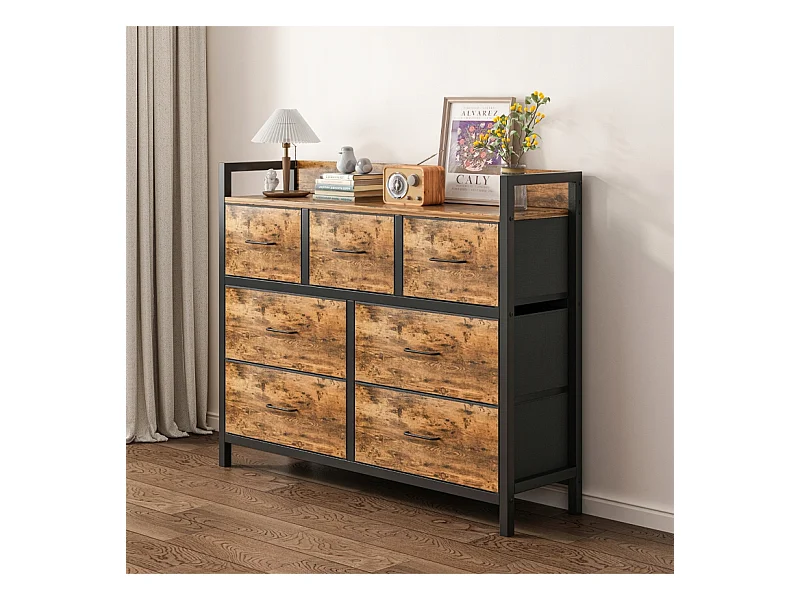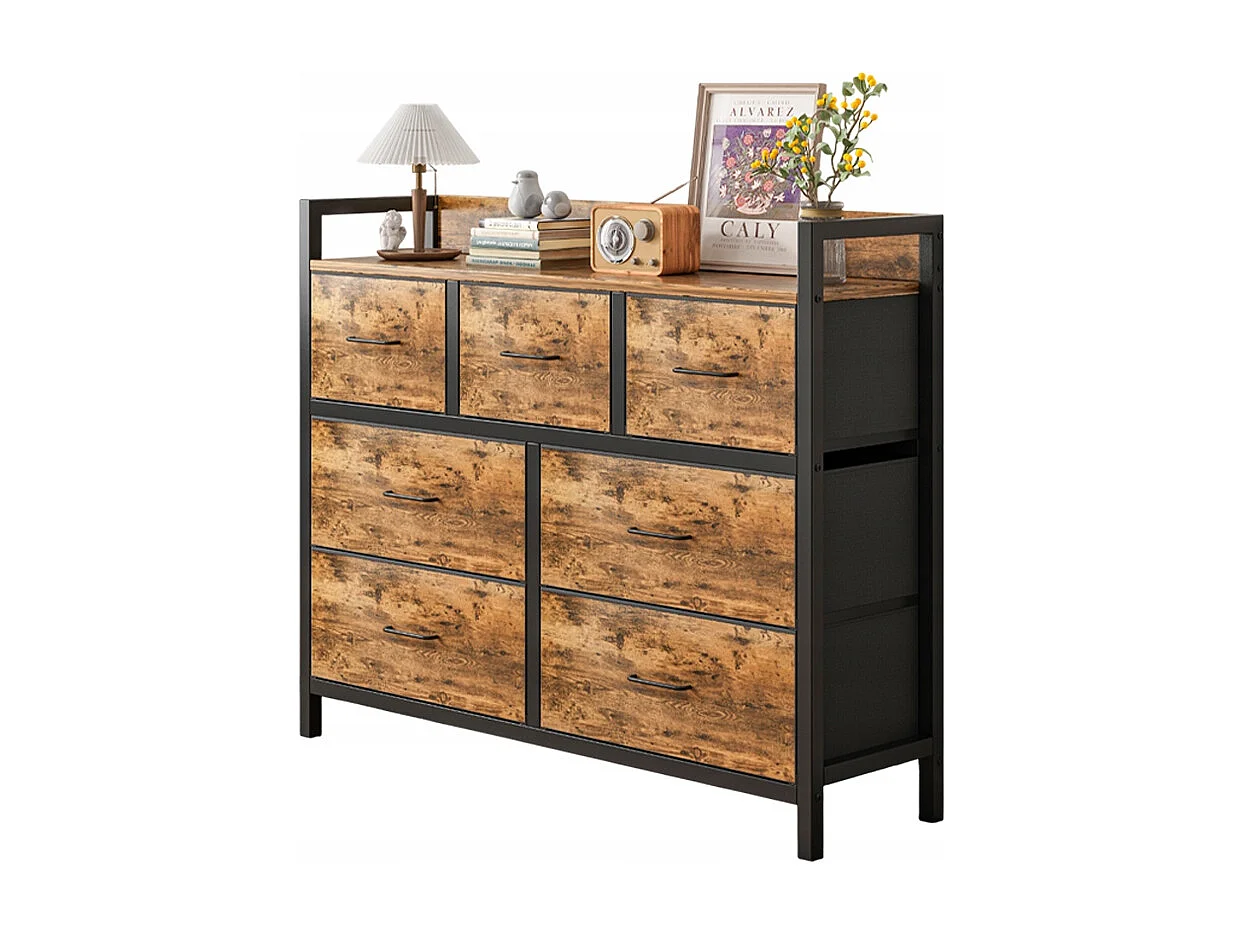 Cómoda, bronce industrial, rústica, con 7 cajones
