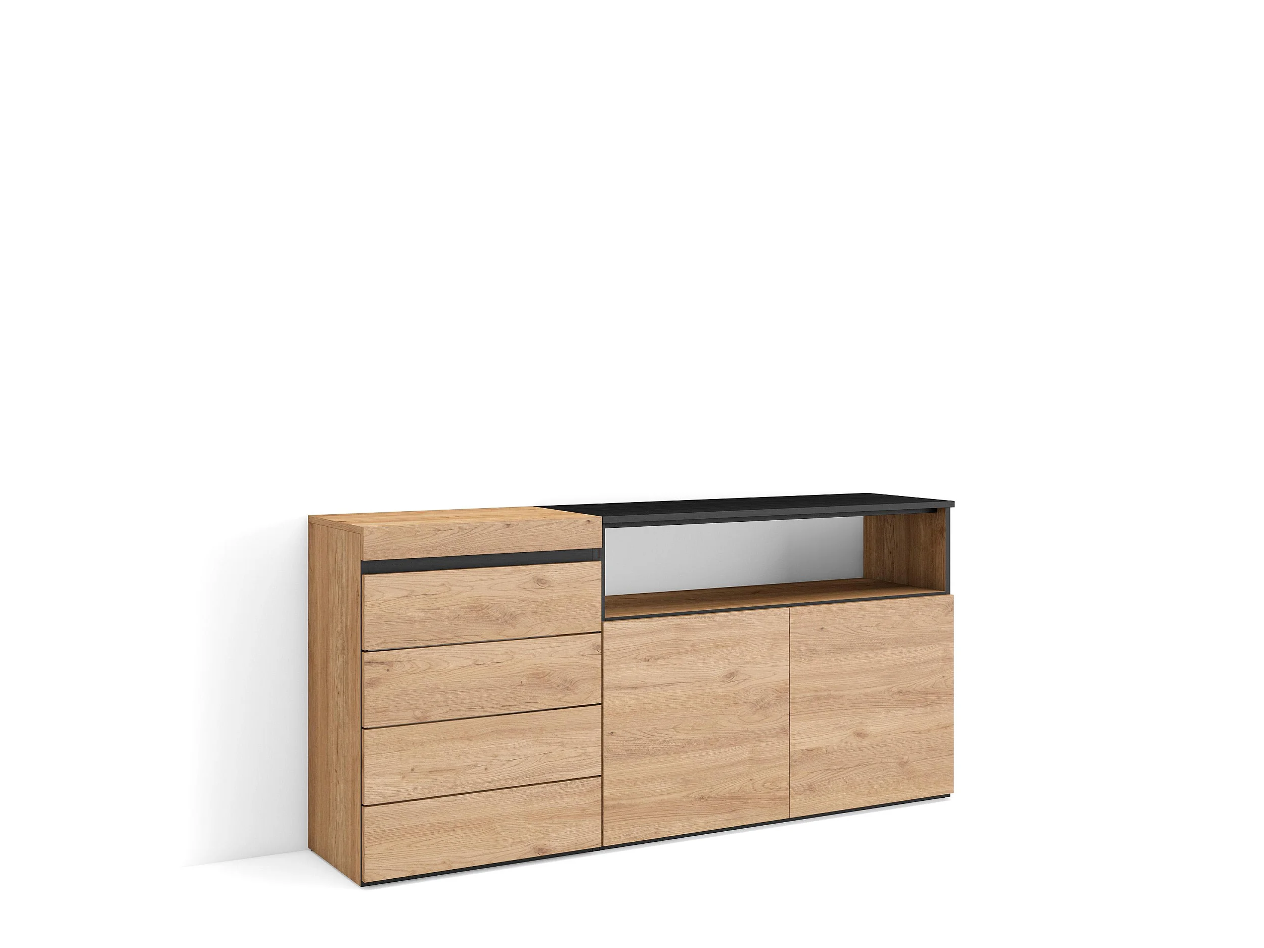 Cómoda, Cajonera, 157x35x75cm, Dormitorio, habitación, Con almacenamiento, Roble
