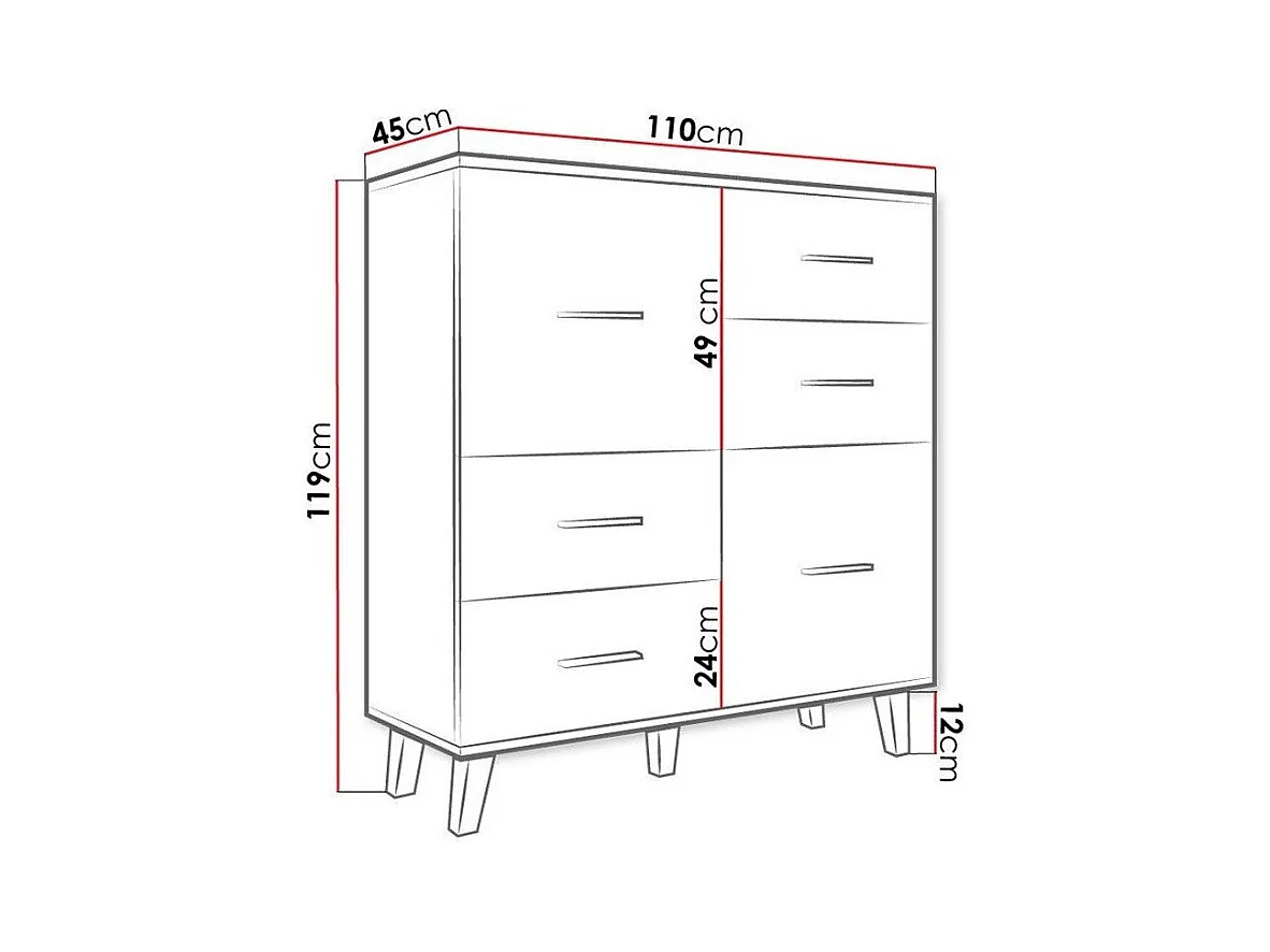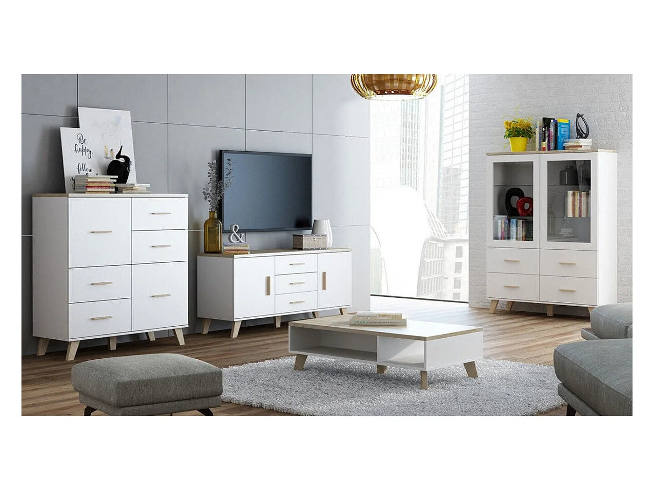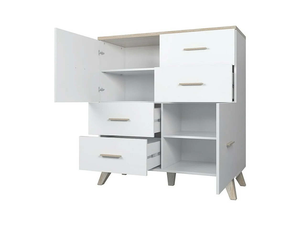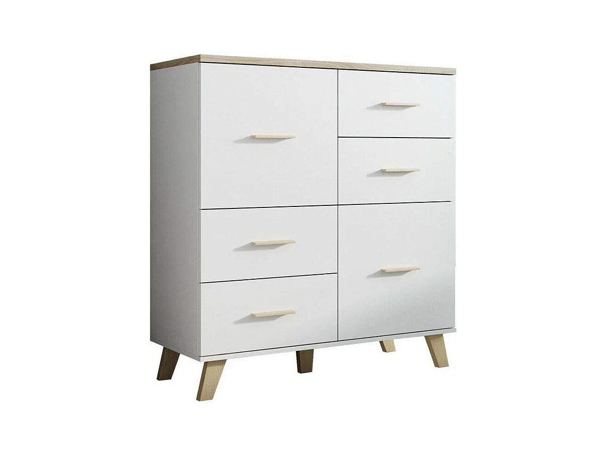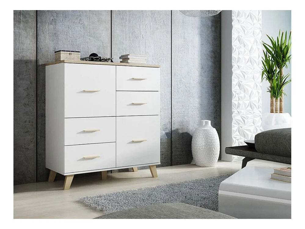 Cómoda Larfloi 104, Roble Sonoma|Blanco, Con cajones y puertas, Número de cajones: 4,