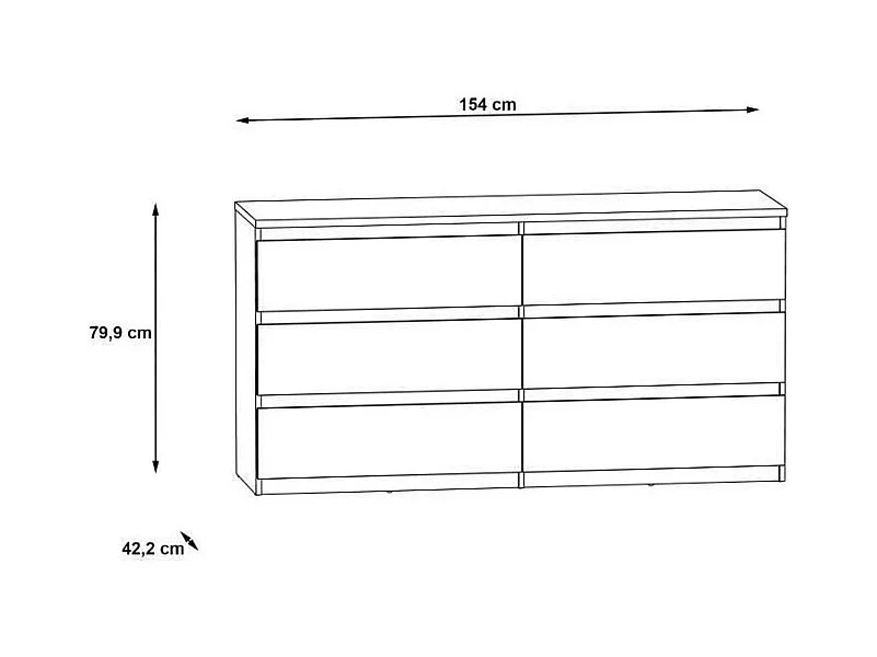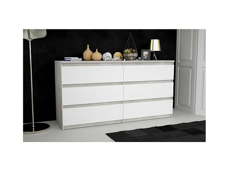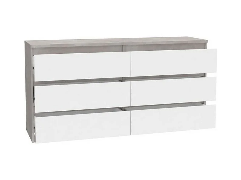 Cómoda CHELSEA de 6 cajones - Blanco/Color hormigón claro - 154 x 42,2 x 79,9 cm