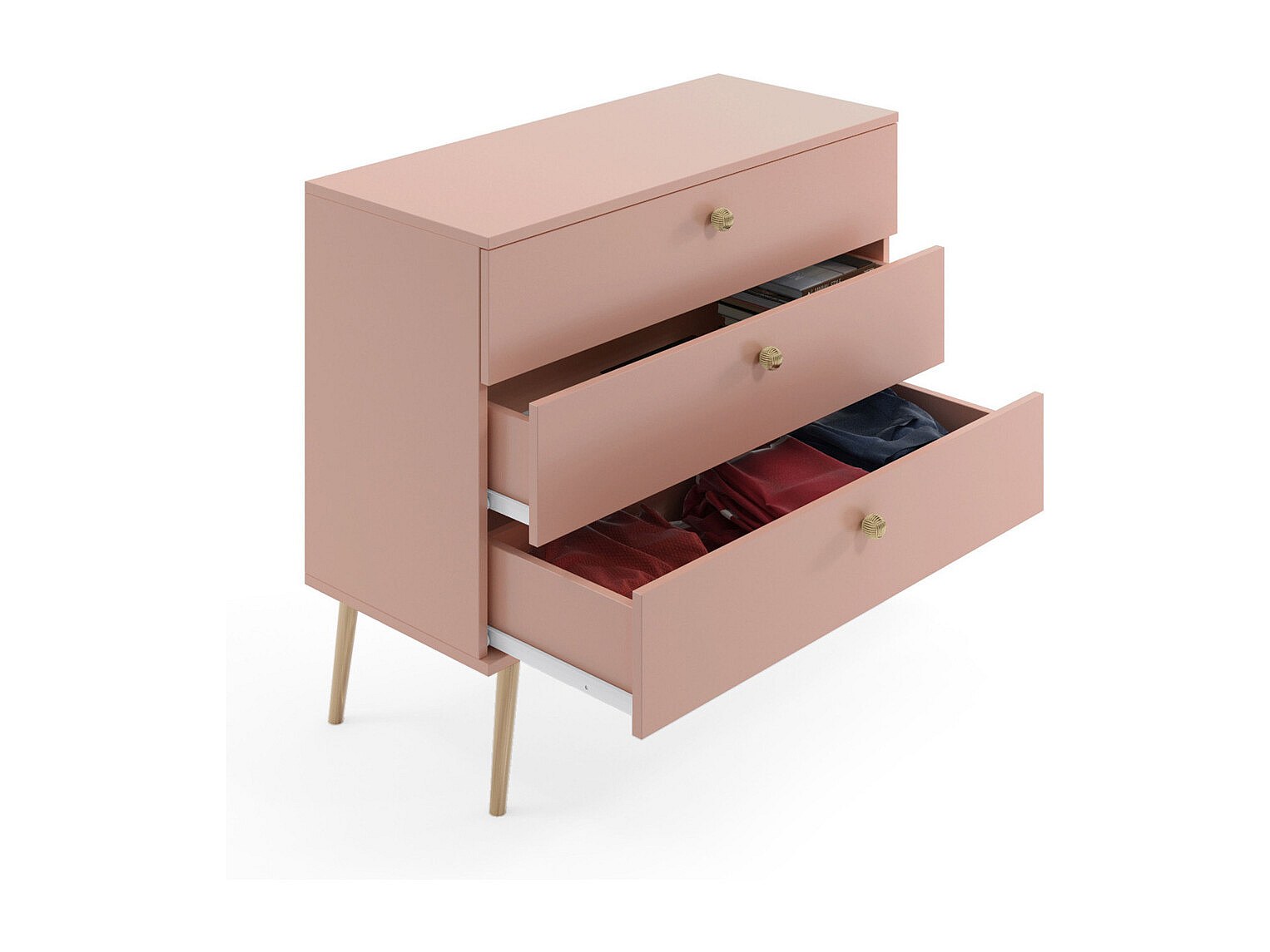 Cómoda Color Rosa – Estilo Escandinavo – 100x85x41 cm – Con Patas Altas y 3 Cajones