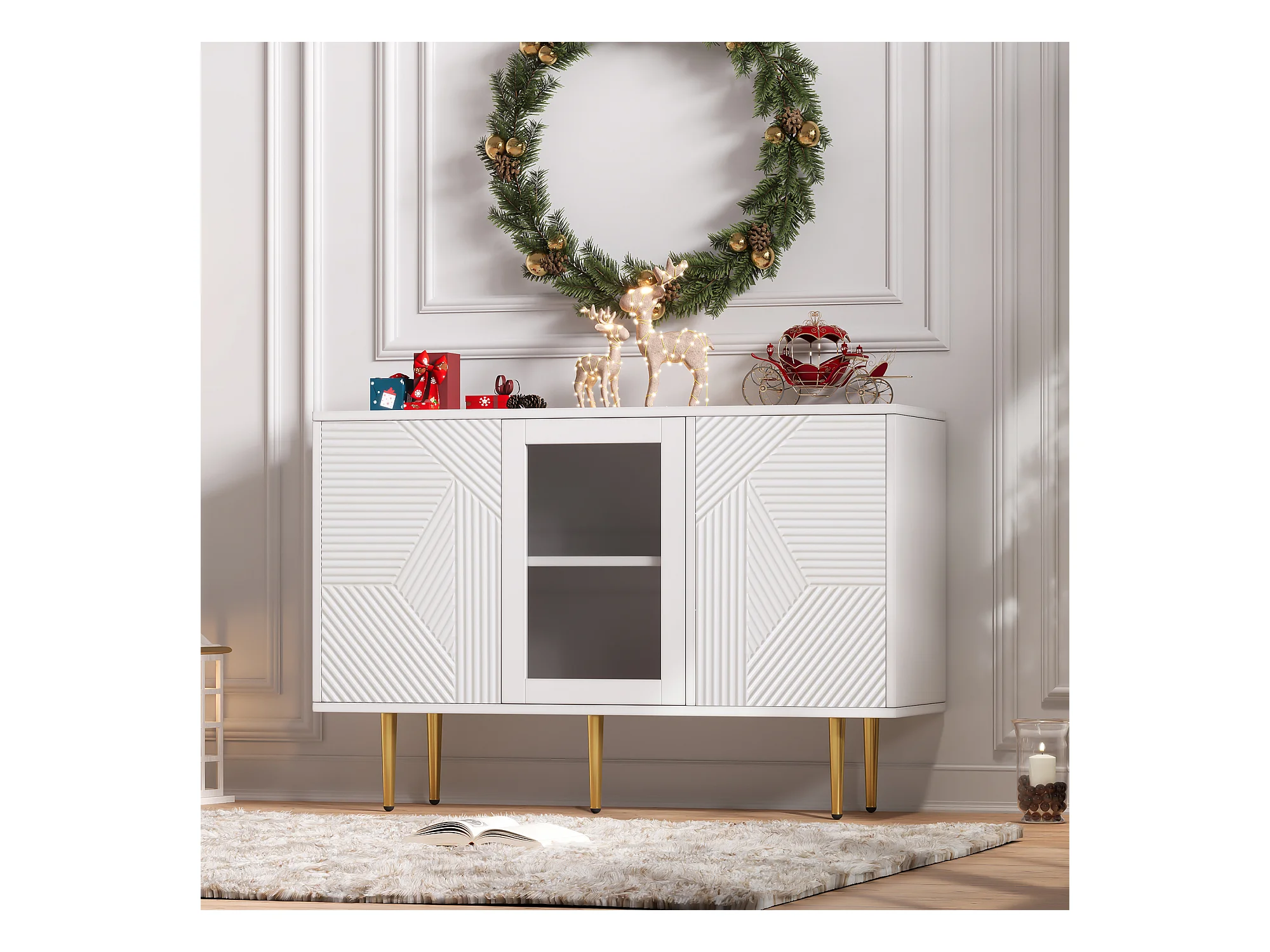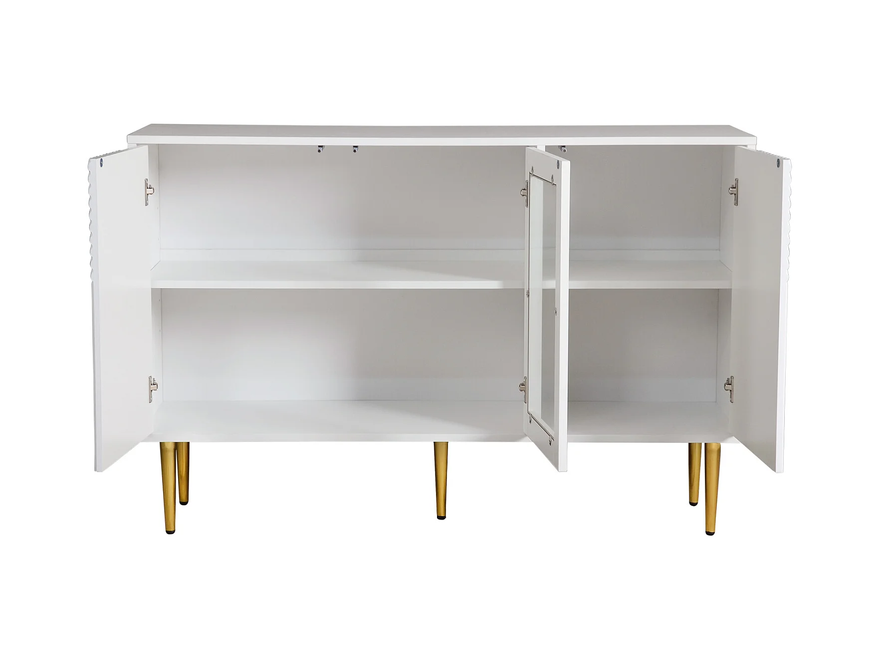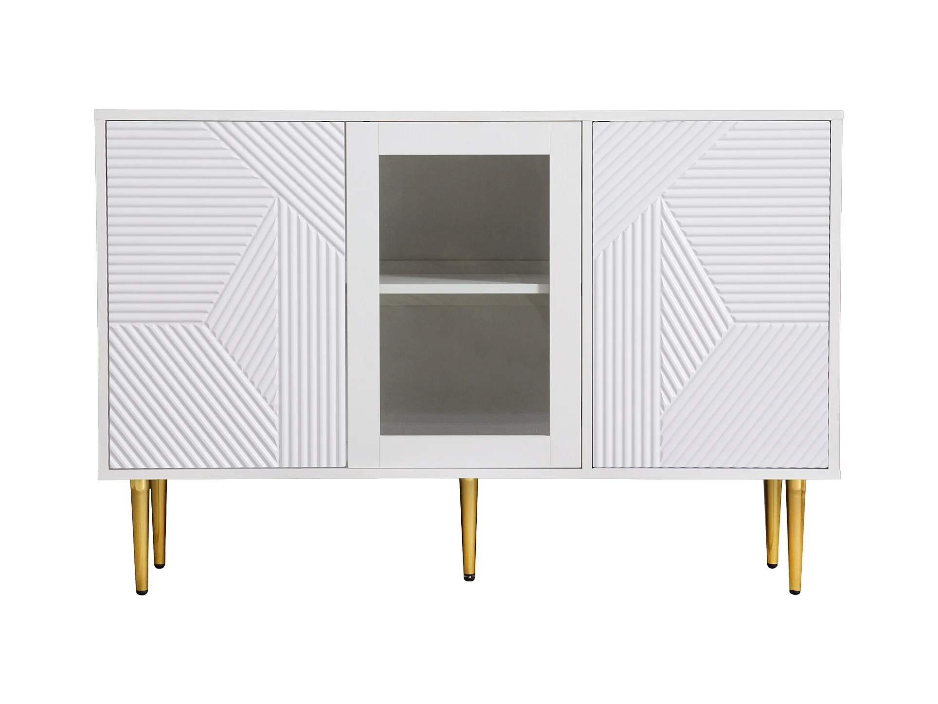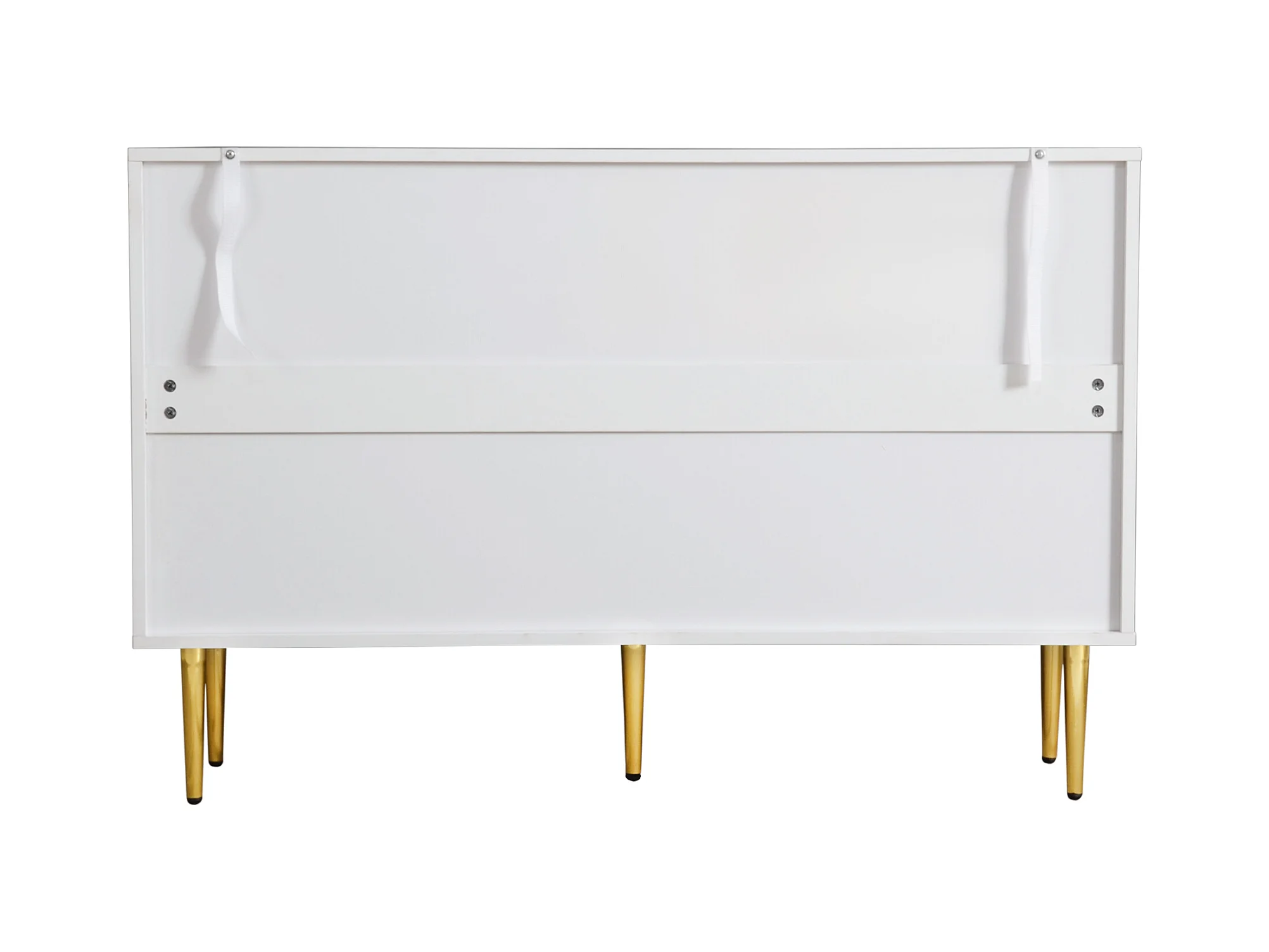 Cómoda con 3 puertas - 120 x 38 x 79,5 cm - Tablero de partículas y patas de metal - Blanco