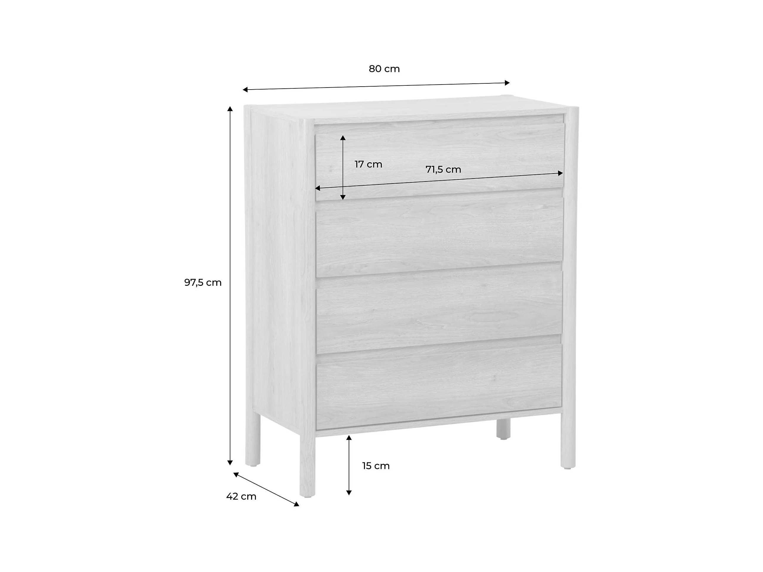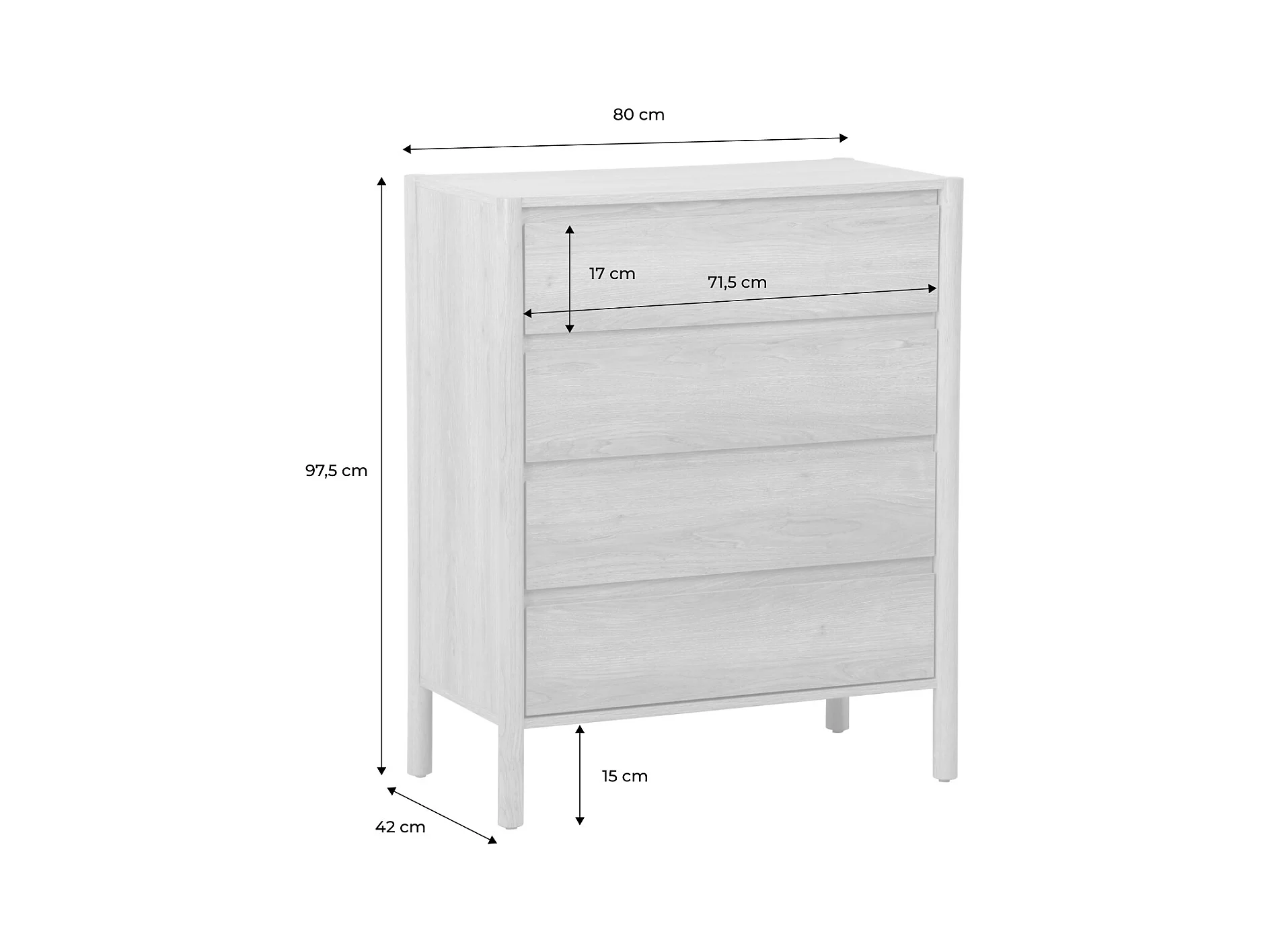 Cómoda con 4 cajones en tablero aglomerado roble gris