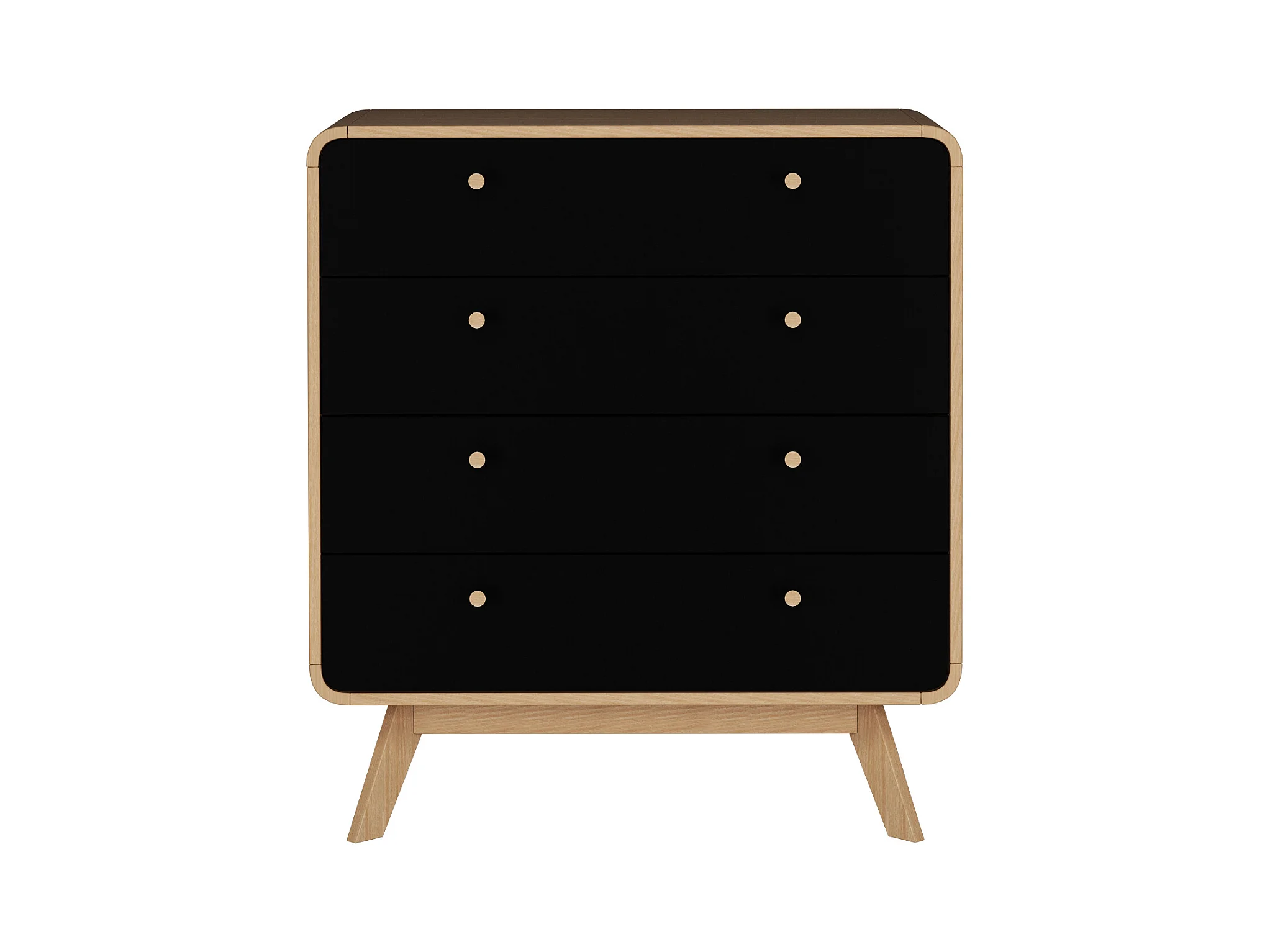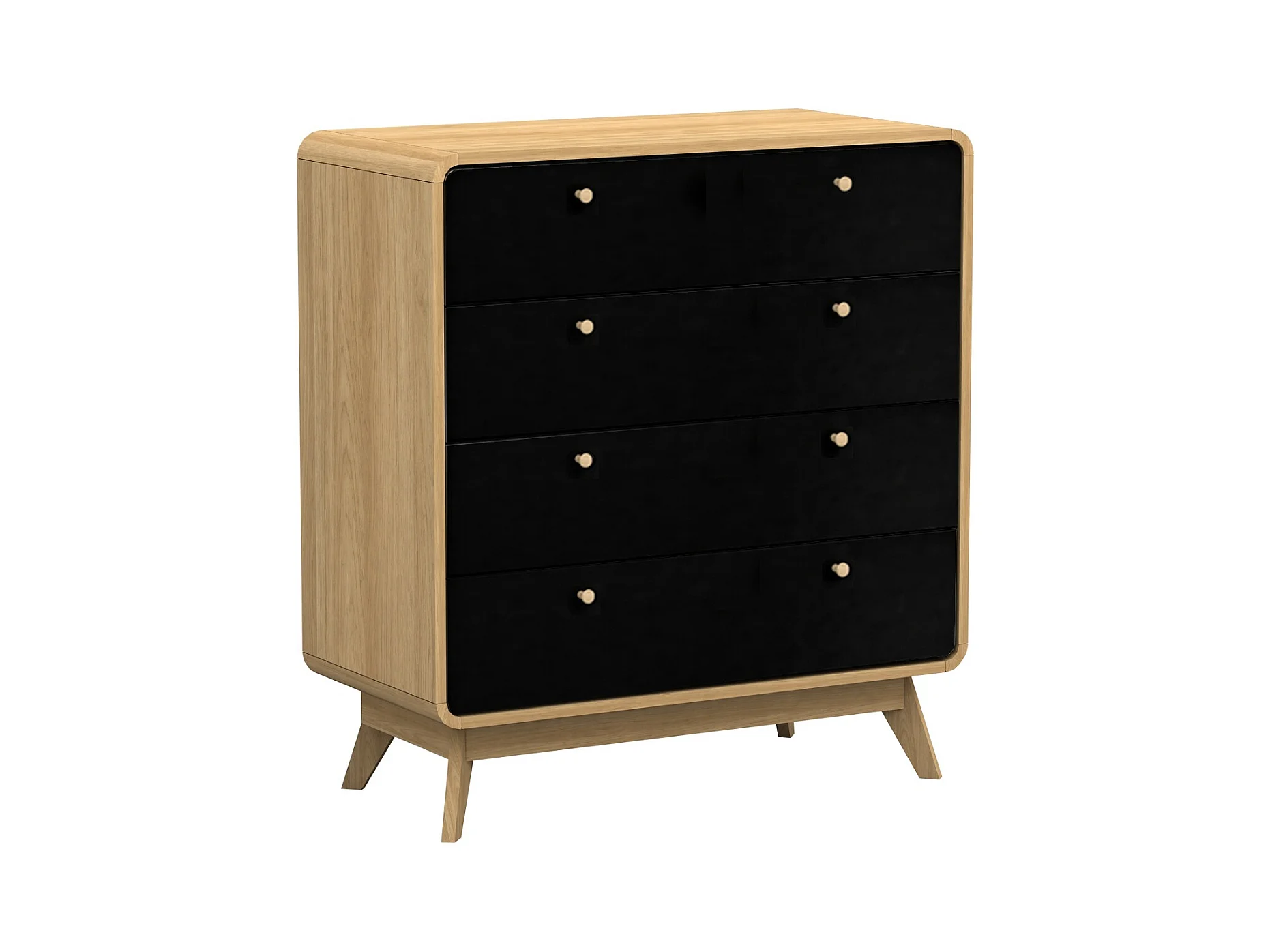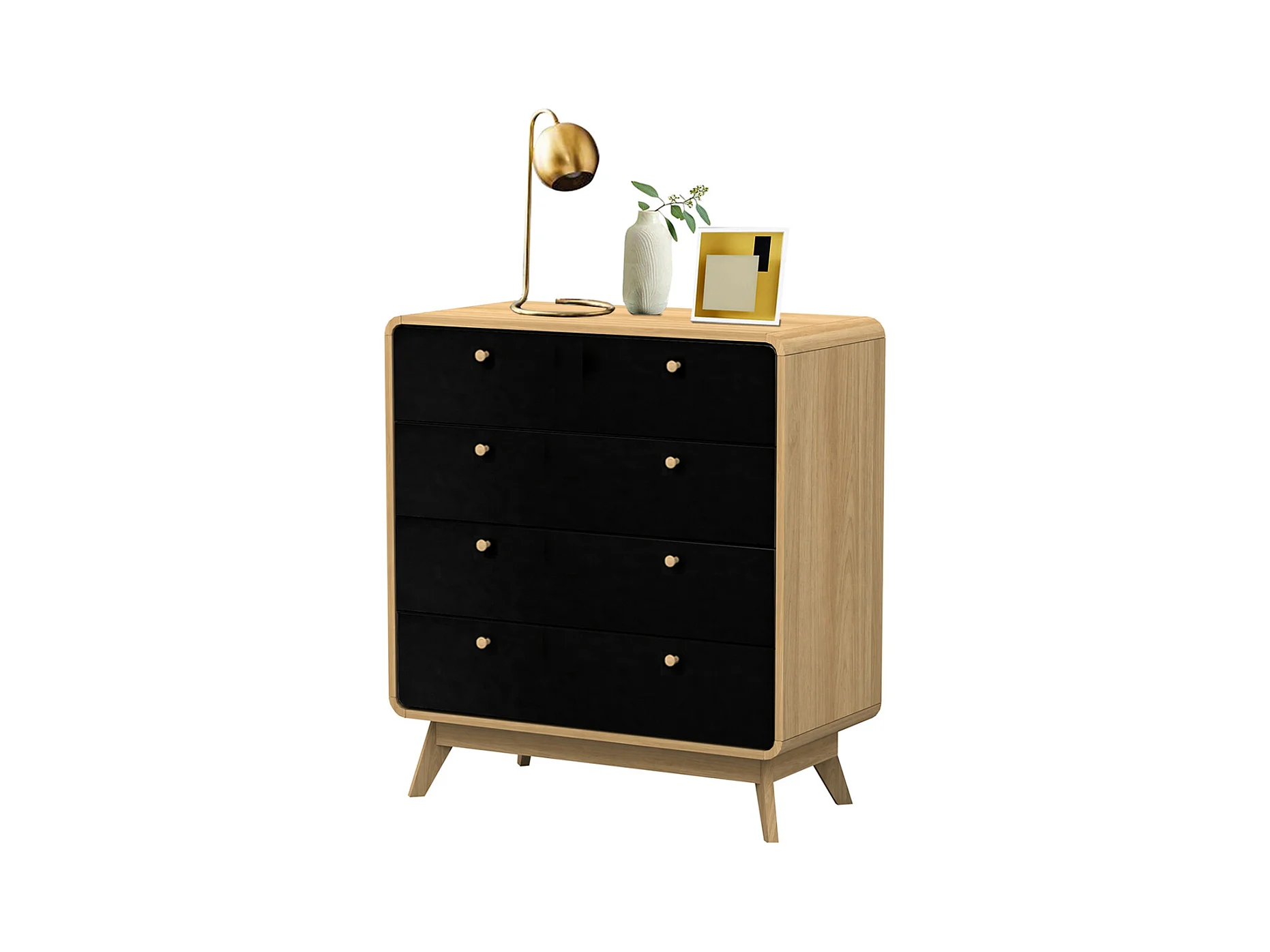 Cómoda con 4 cajones en tablero aglomerado roble y negro