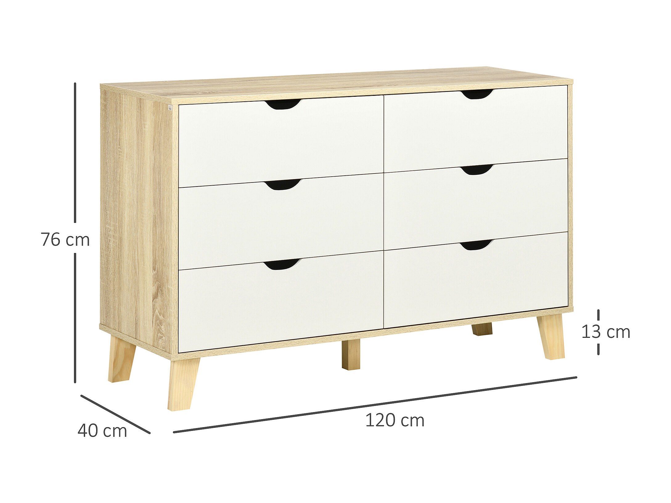 Cómoda con cajones blanco y natural 120x40x76 cm HOMCOM