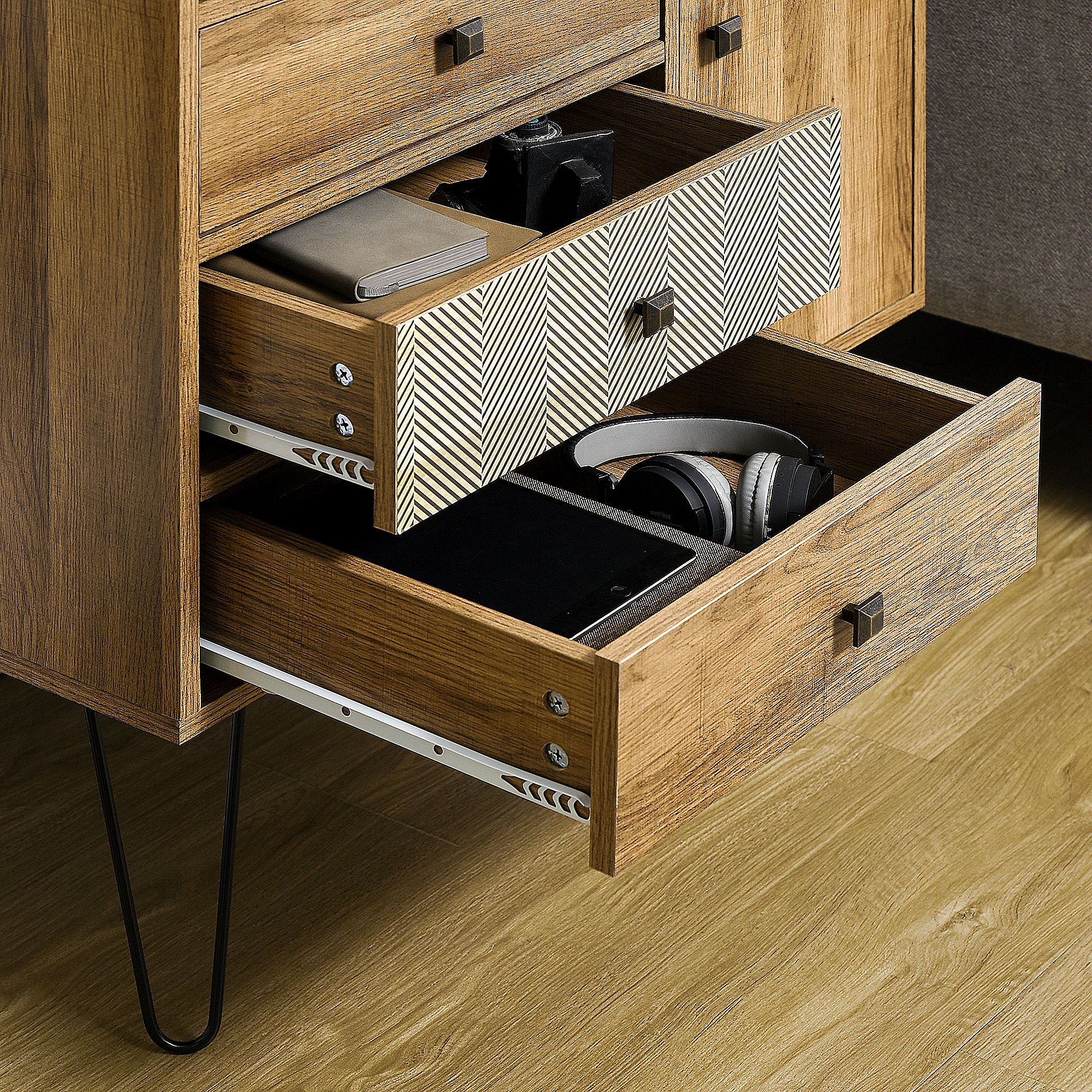 Buffet industrial de metal y madera de mango Achille - Amplio espacio de almacenamiento con puerta batiente y cajones centrales