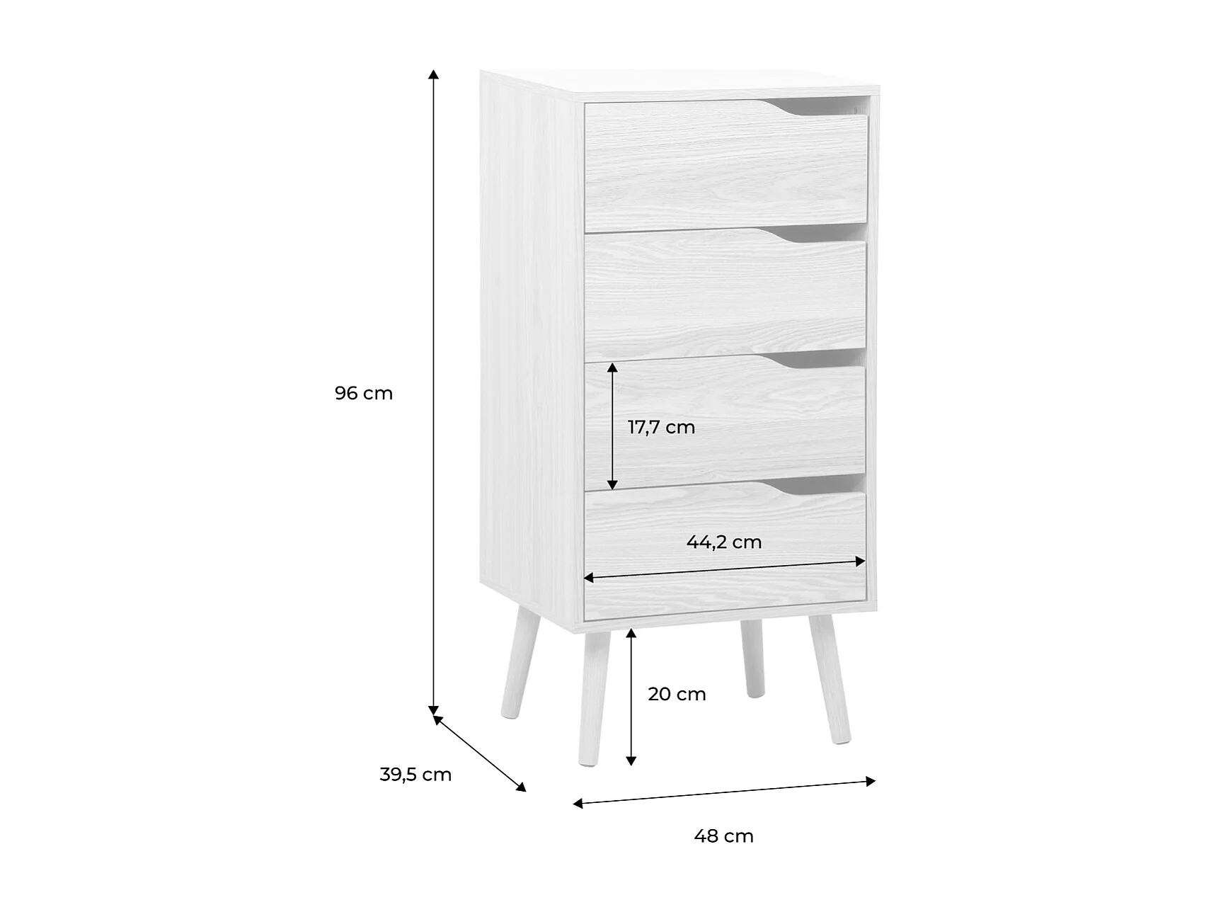Cómoda con efecto madera, 4 cajones nogal