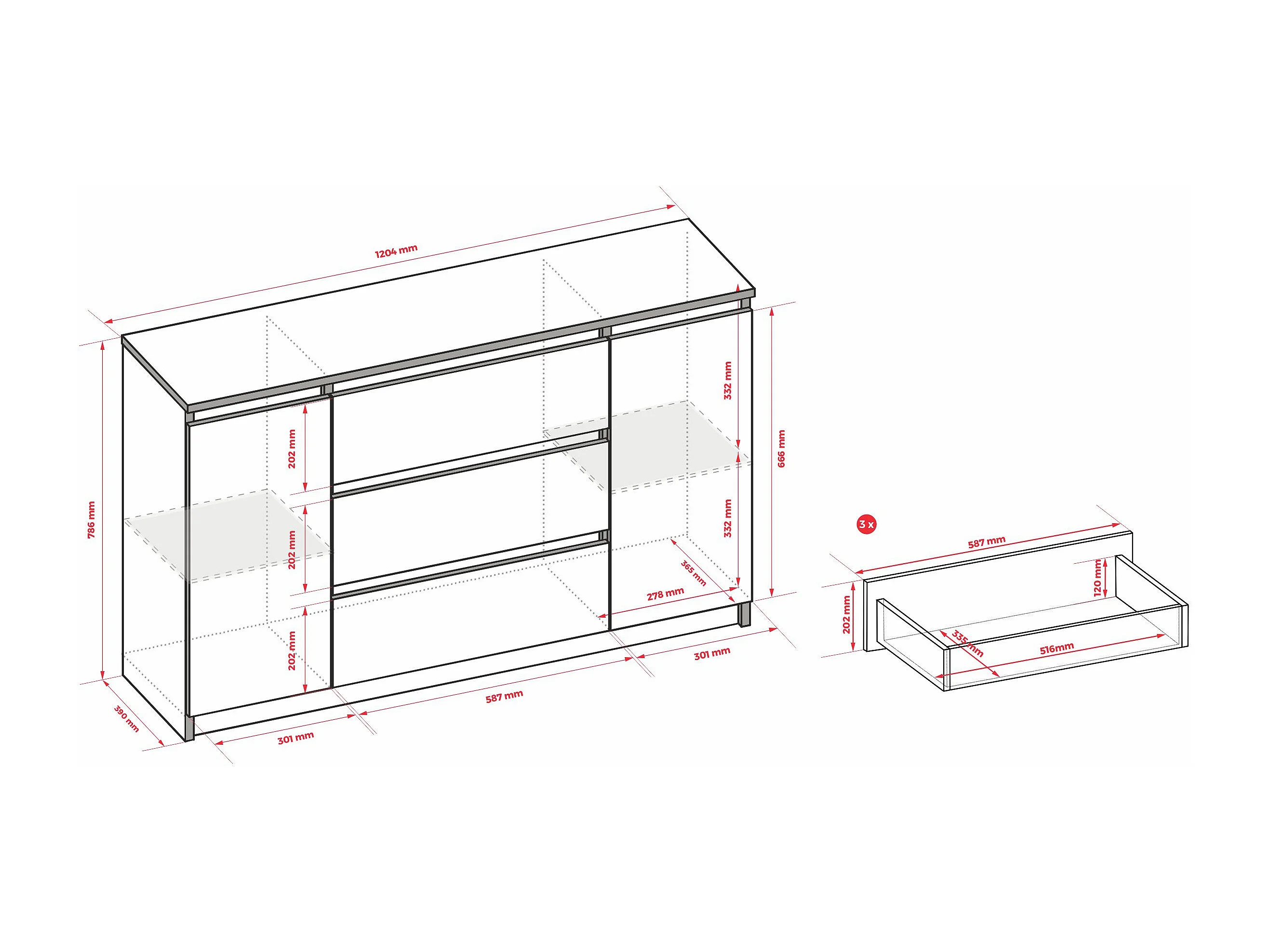Cómoda de 2 puertas y 3 cajones, 120 x 78 x 39 cm, color: marrón