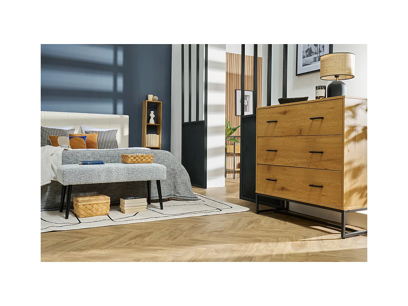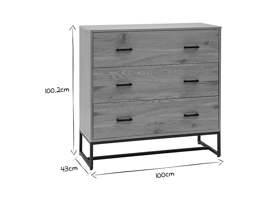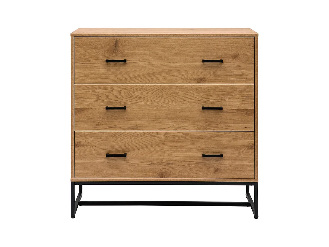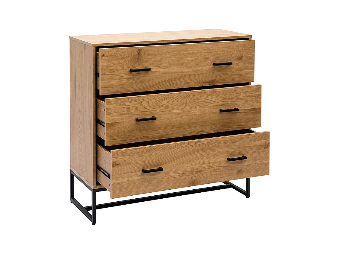 Cómoda de 3 cajones con acabado de roble claro y metal negro 100 cm LOVATO