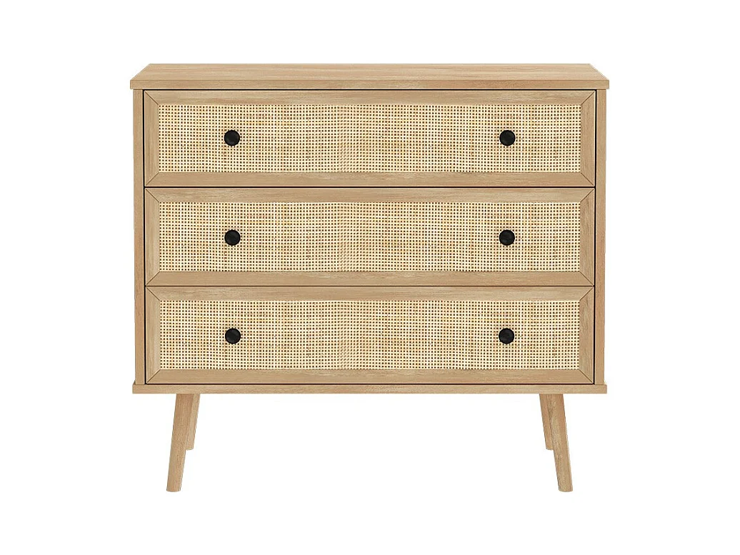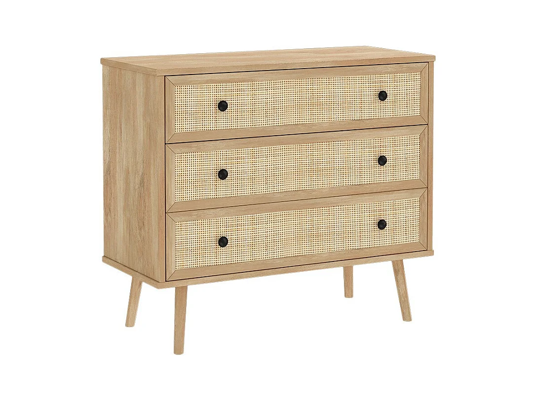 Cómoda de 3 Cajones con Patas de Madera - Color Natural - 90x39x79 cm - Mueble de Almacenamiento para Dormitorio