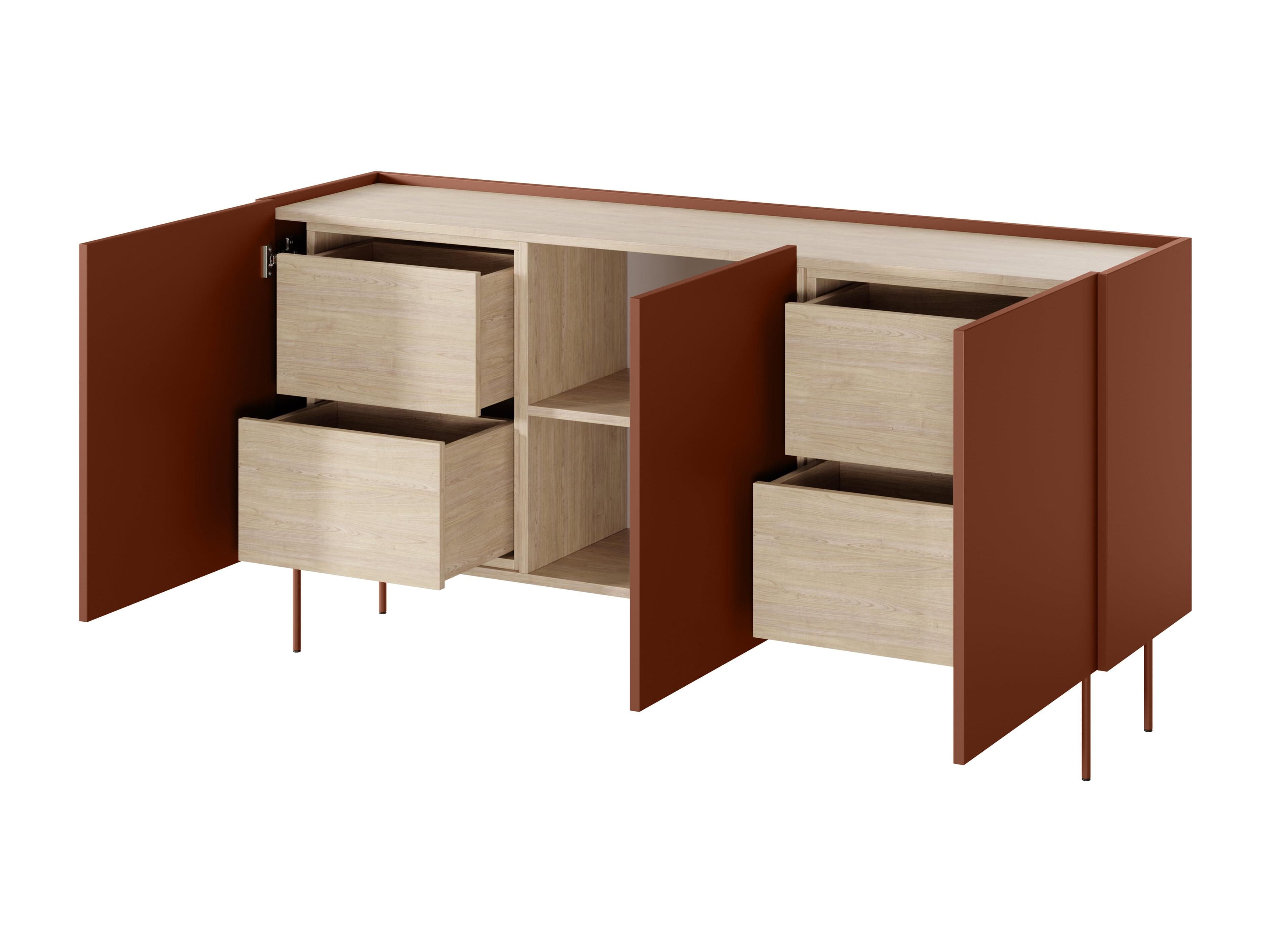 Cómoda de 4 puertas 2 cajones con pie metálico 220x85 cm