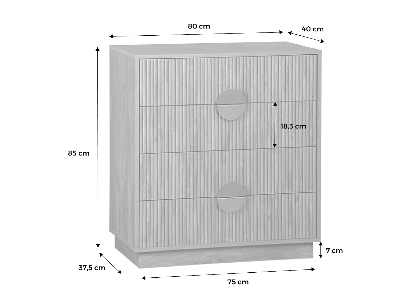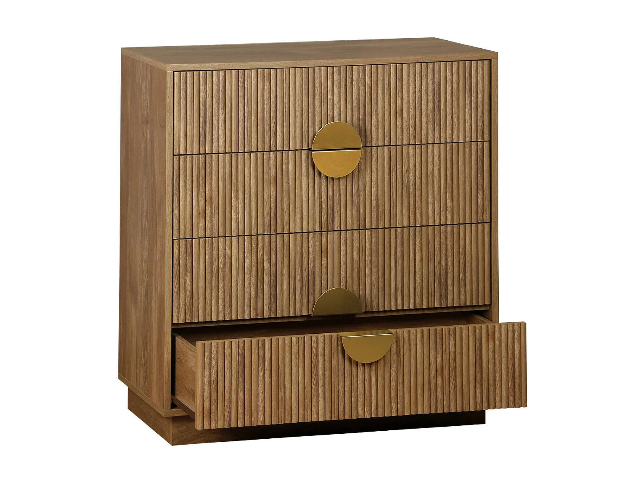 Cómoda de 4 cajones con ranuras efecto madera de mango marrón dorado