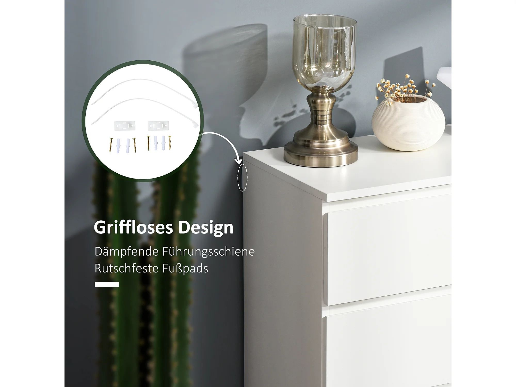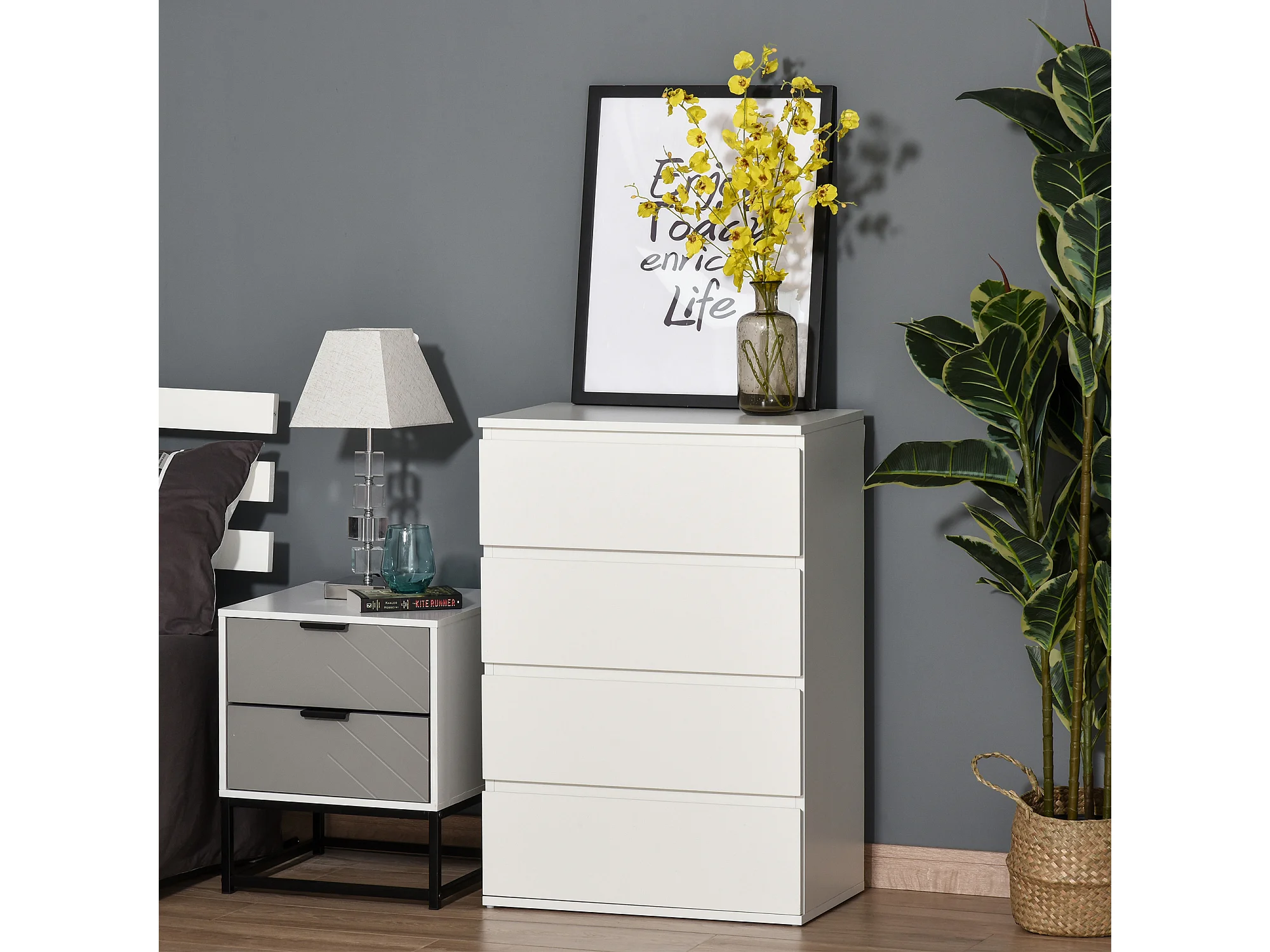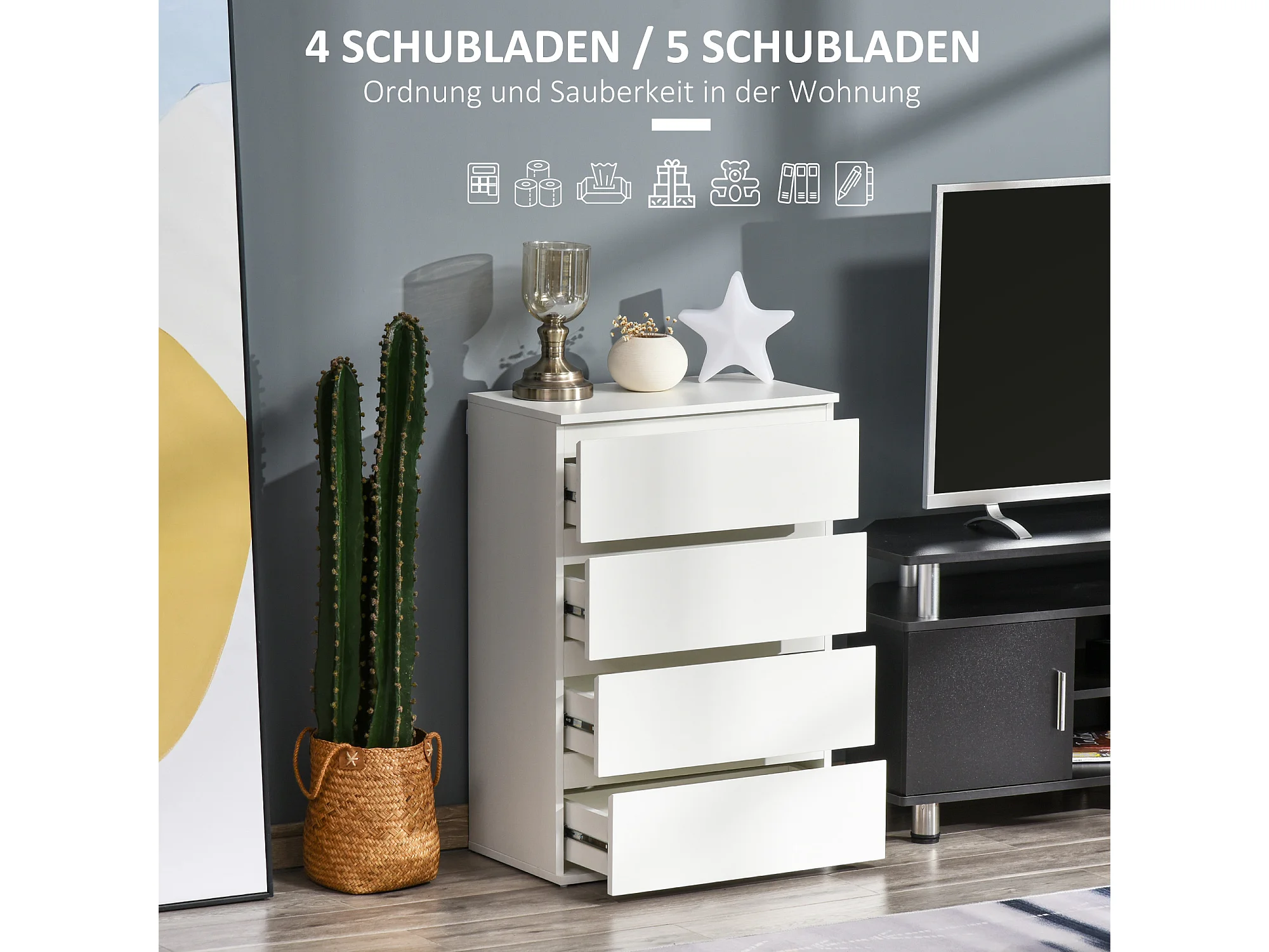 Cómoda de 4 cajones, diseño minimalista, MDF, color blanco, con sistema antivuelco (55x33x80cm)