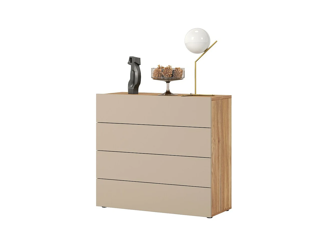 Cómoda 4 cajones AMALIE – Color beige arena – L100 x H93 x P42 cm – Acabado elegante y formas suaves