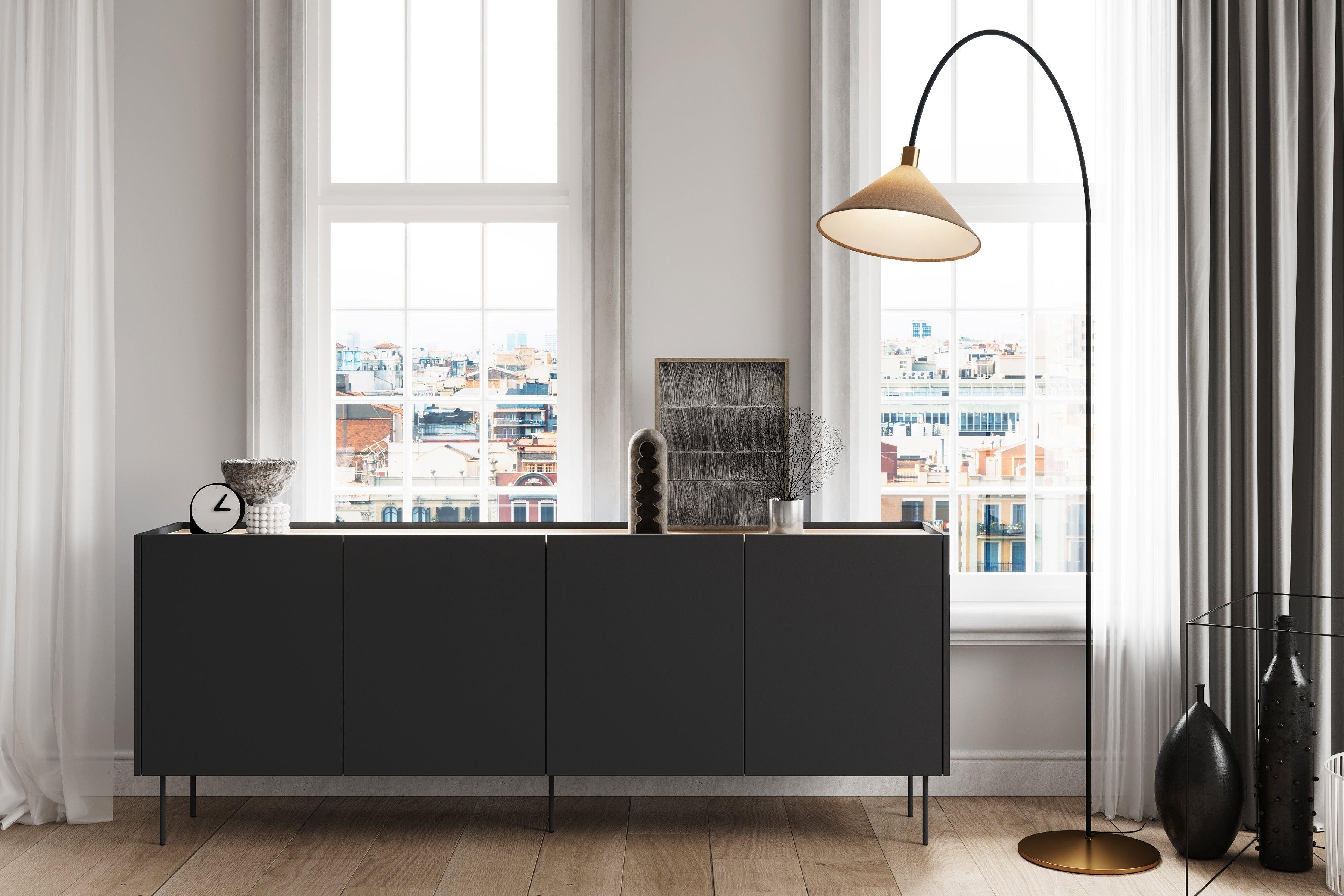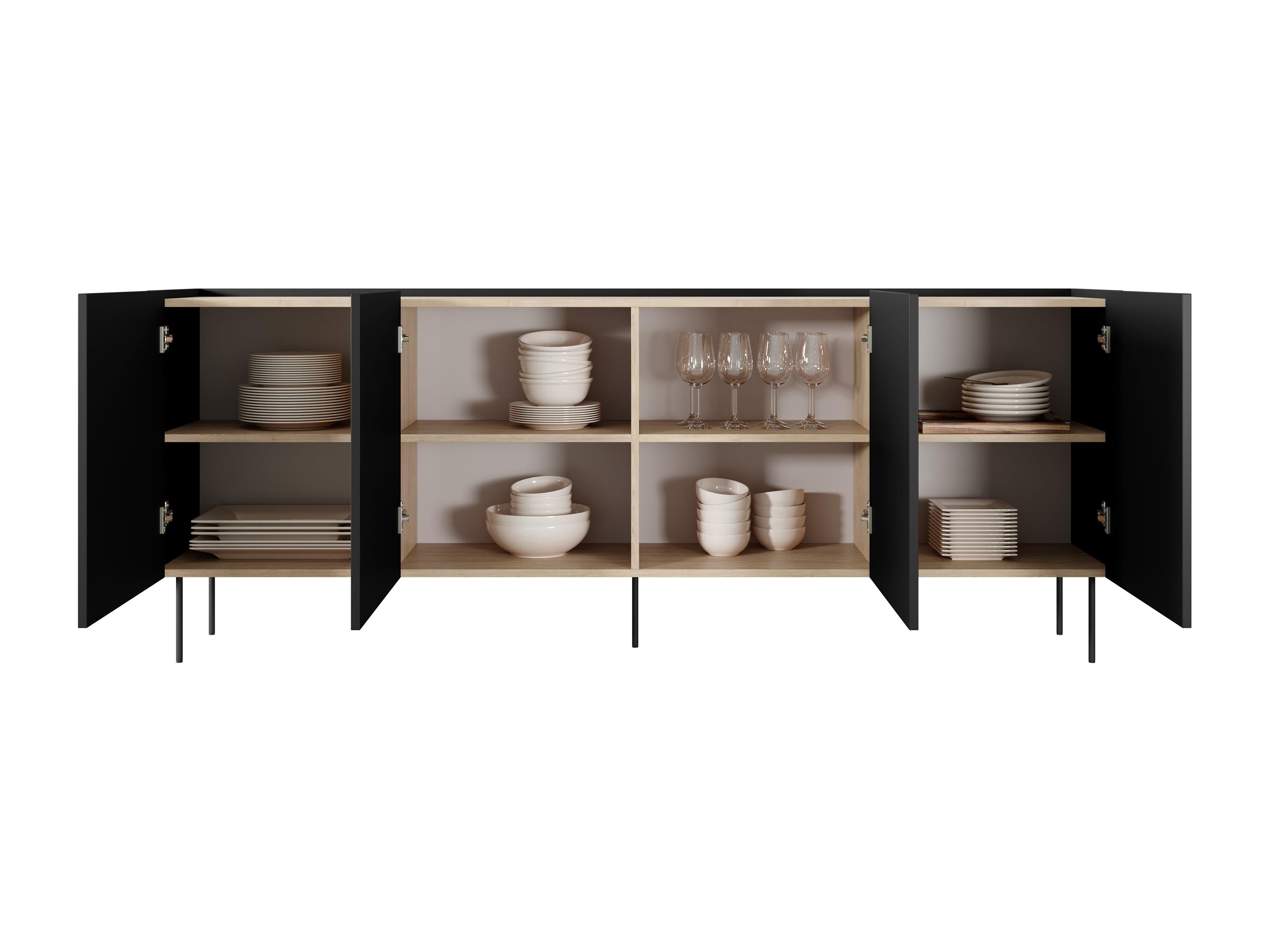 Cómoda de 4 puertas con pie de metal 220x85 cm