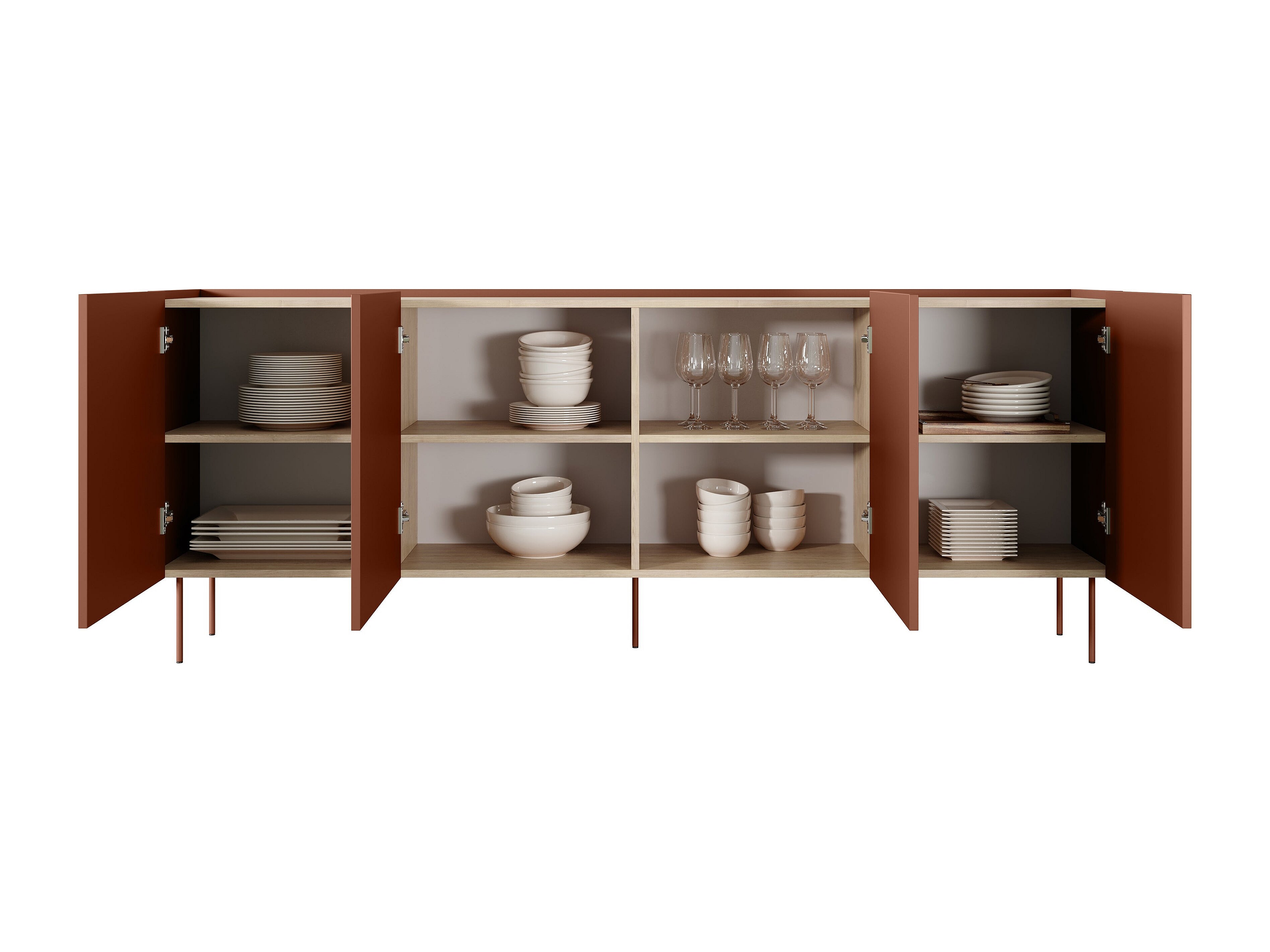 Cómoda de 4 puertas con pie de metal 220x85 cm