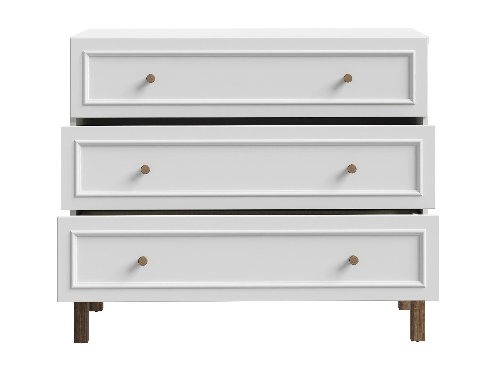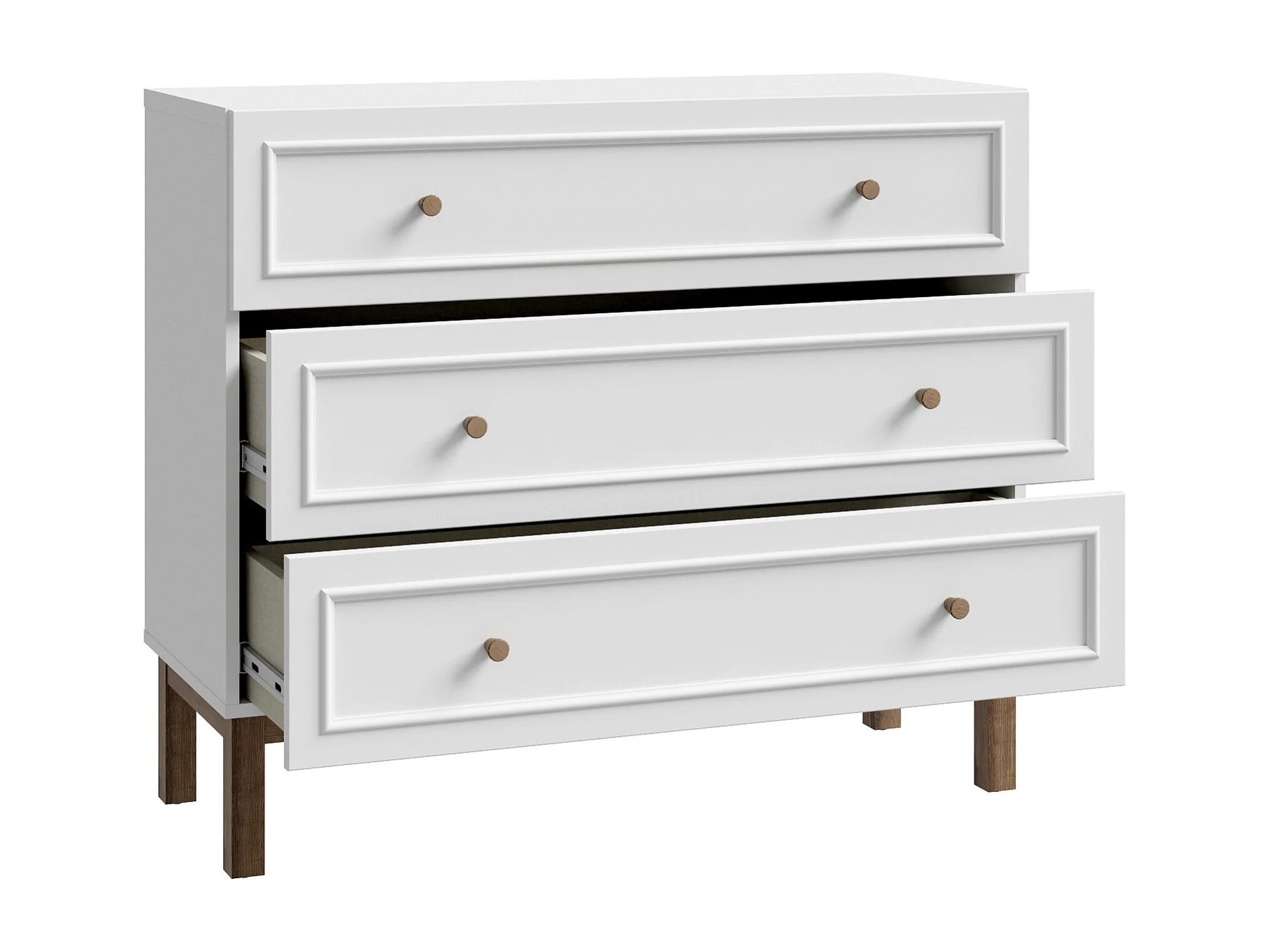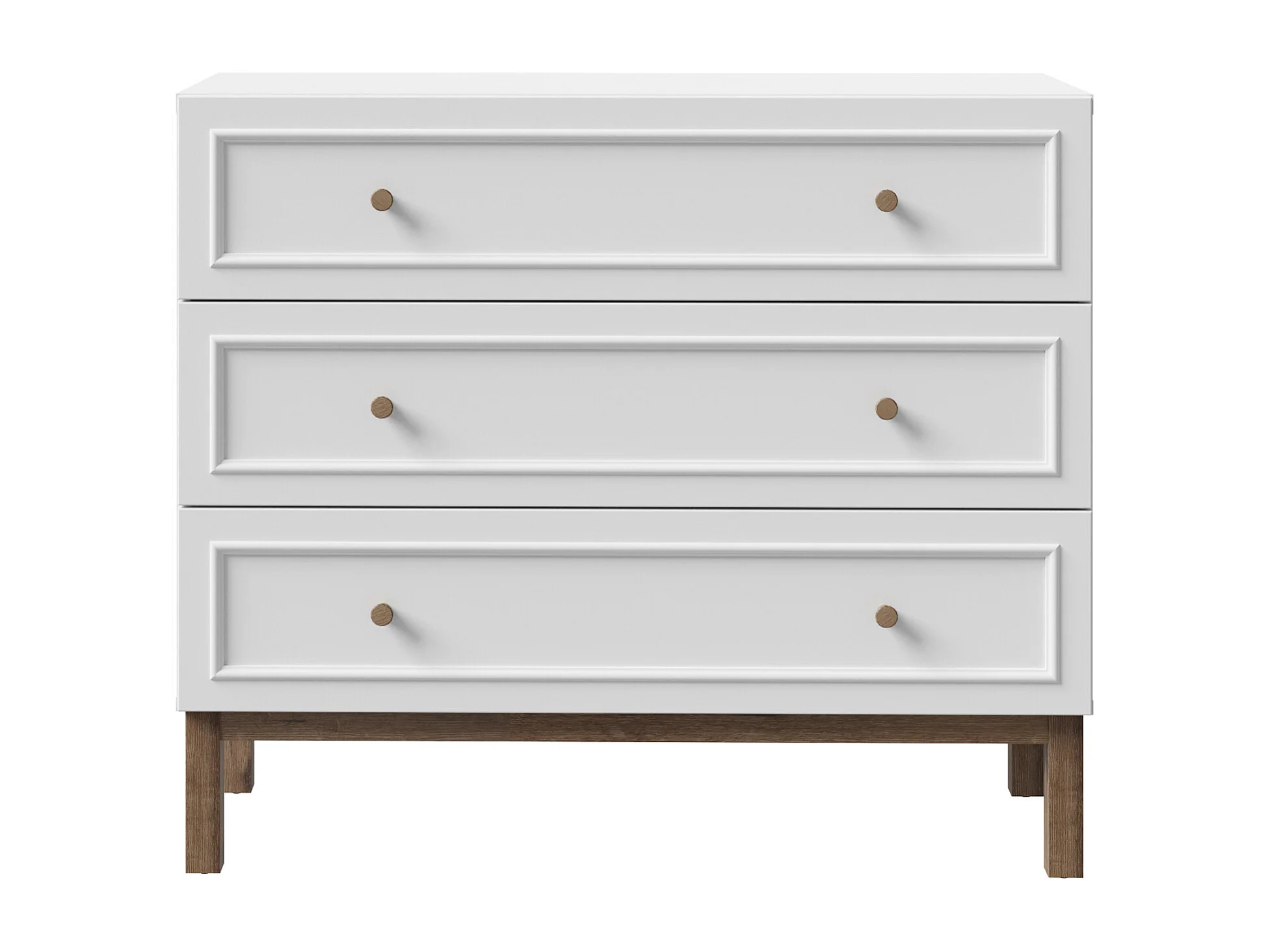 Cómoda de 85x100x42 cm con tiradores de madera en color blanco y roble noble Penki