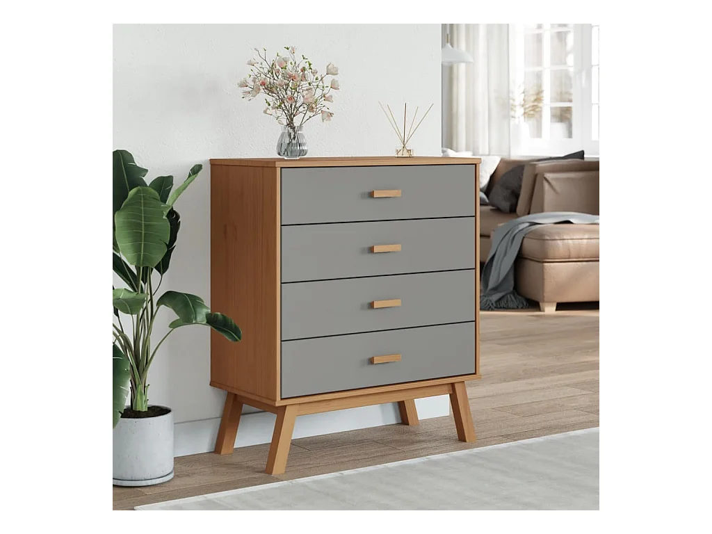 Cómoda de cajones OLDEN madera maciza de pino gris y marrón ES267840