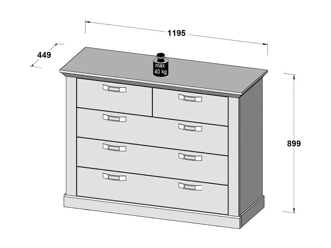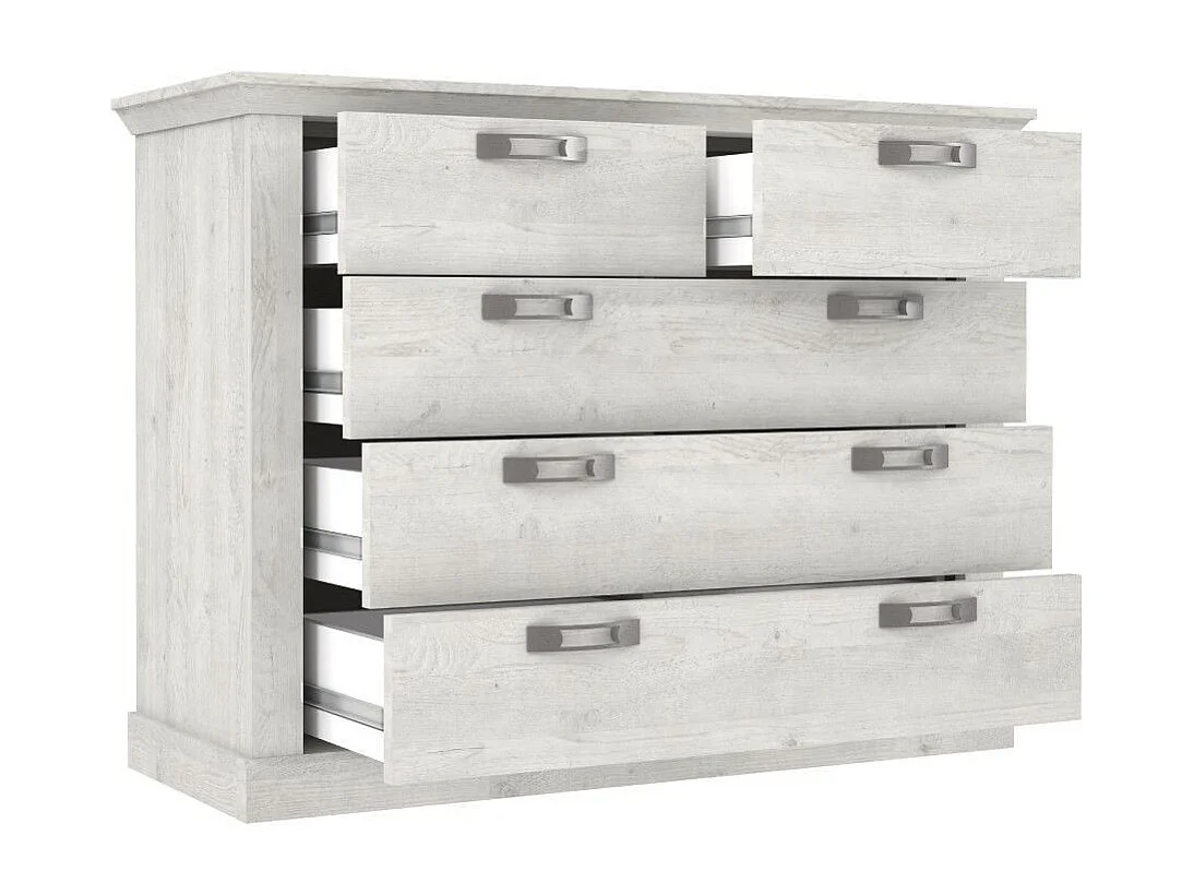 Cómoda de dormitorio de 5 cajones de 89,9x119,5x44,9 cm con acabado en madera blanca Karen