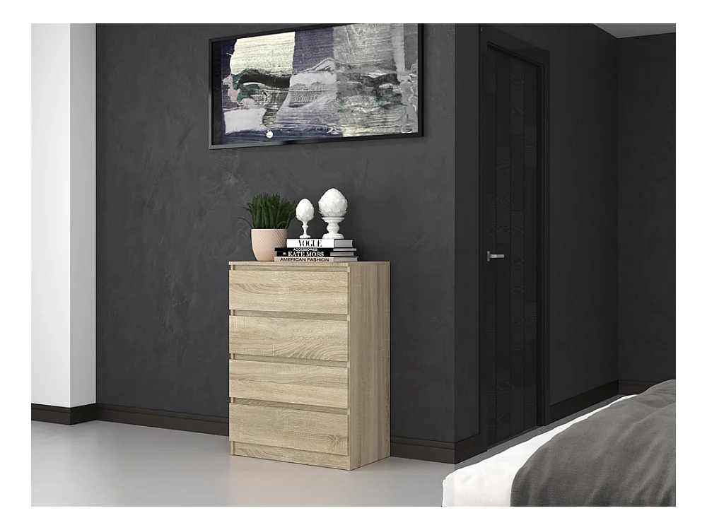 Cómoda de Dormitorio Moderna 70x97x40 cm – 4 Cajones con Guías Suaves – Color Roble Sonoma