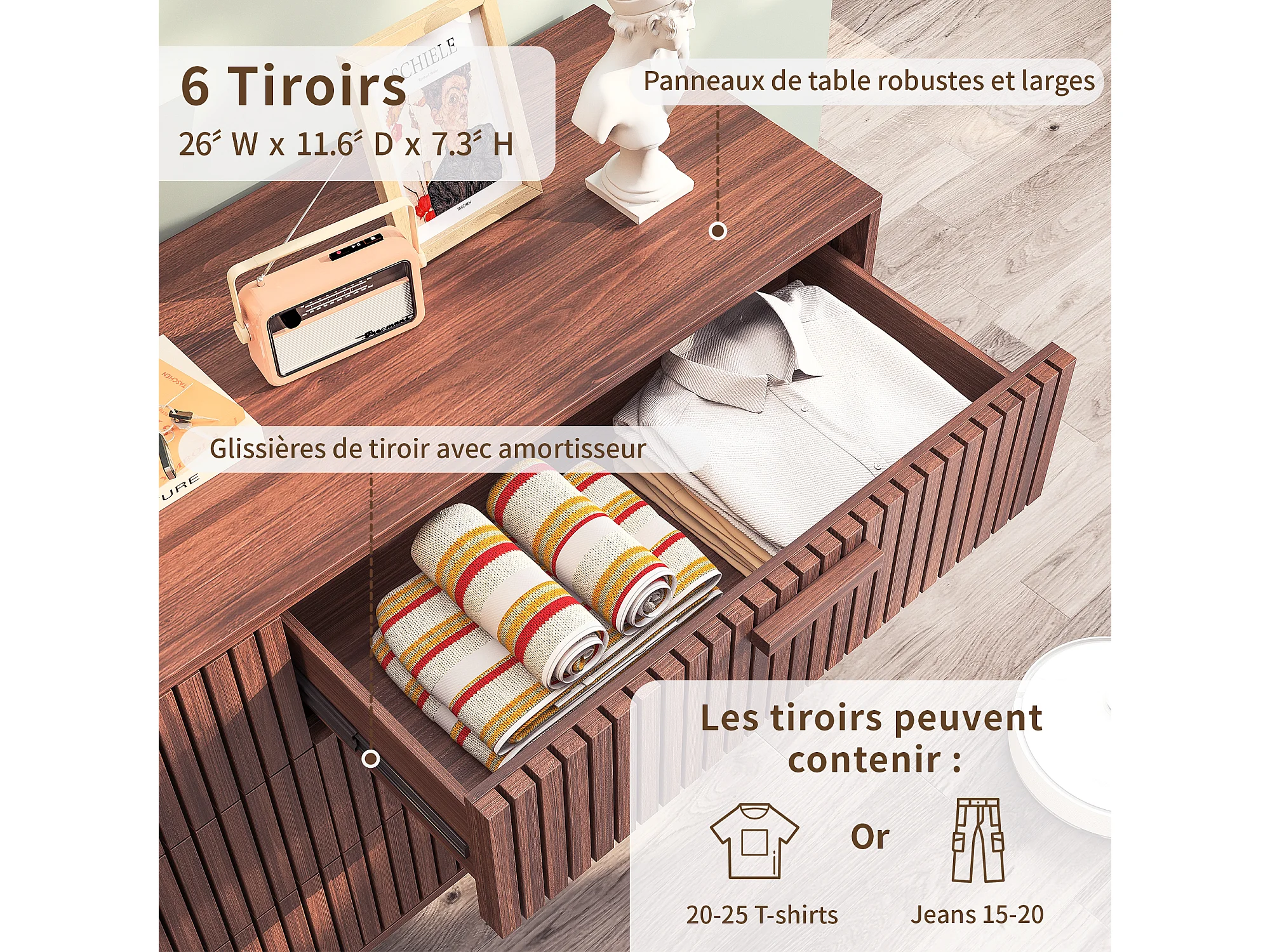 Cómoda de madera y ratán con 6 cajones, mueble de almacenamiento multifuncional, cómoda, tocador, marrón