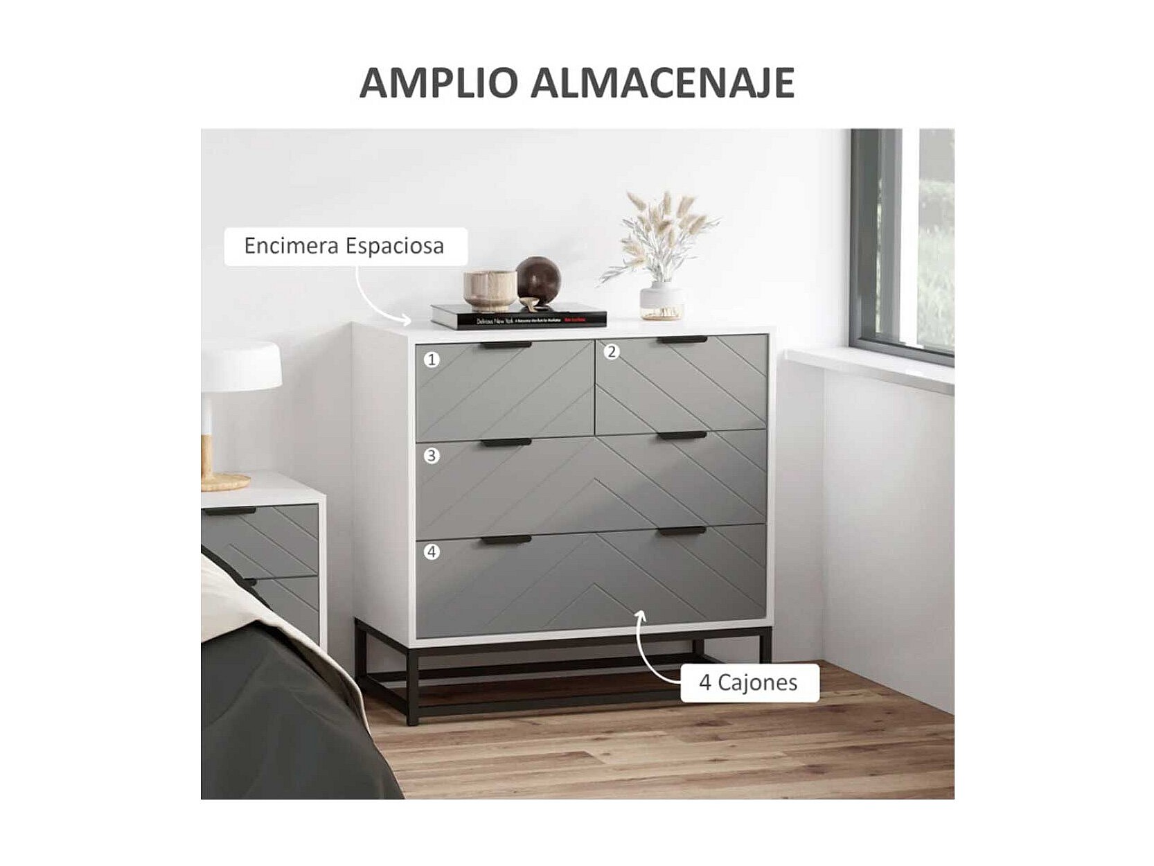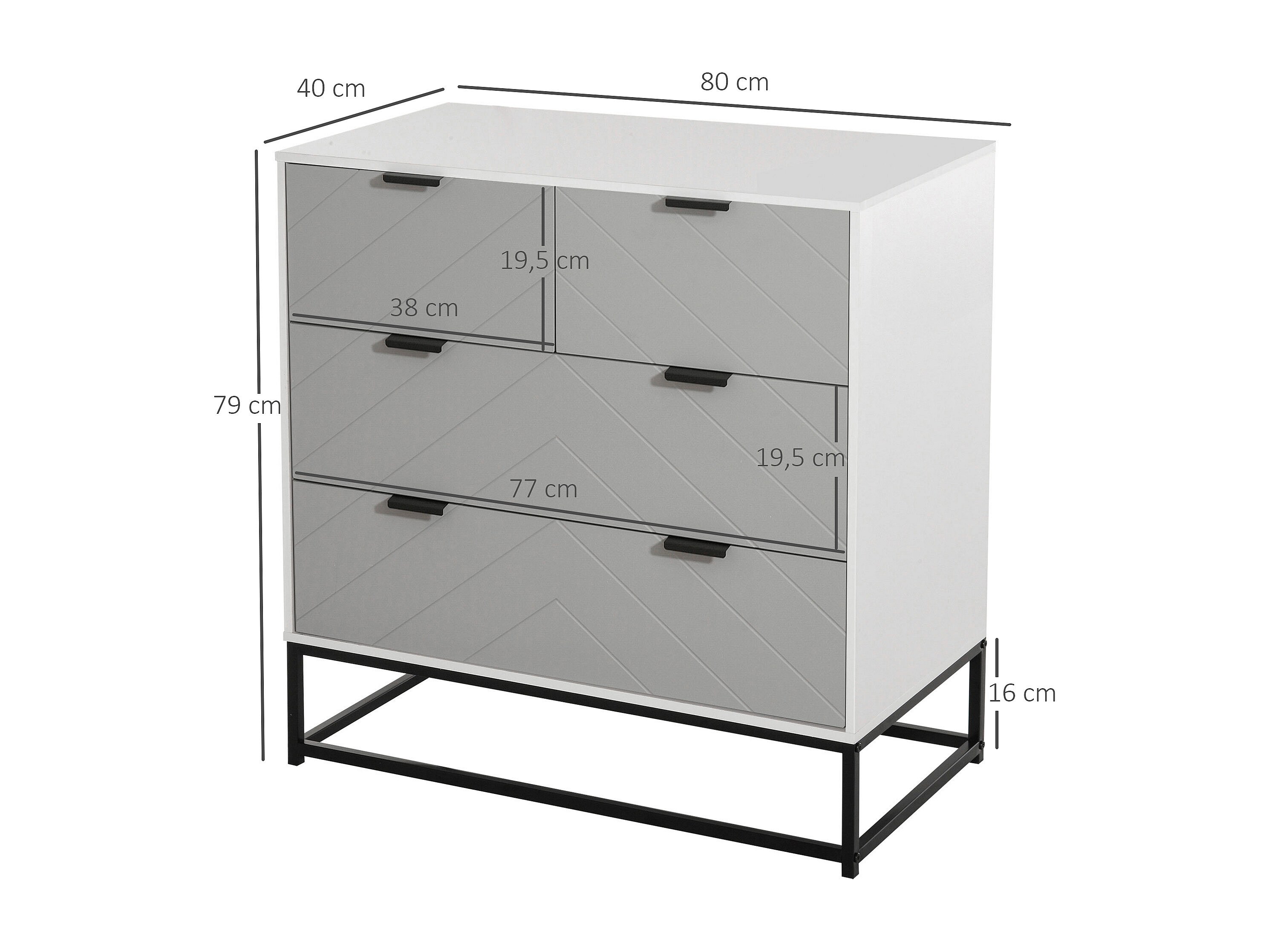 Cómoda de cajones gris, blanco y negro 80x40x79 cm HOMCOM