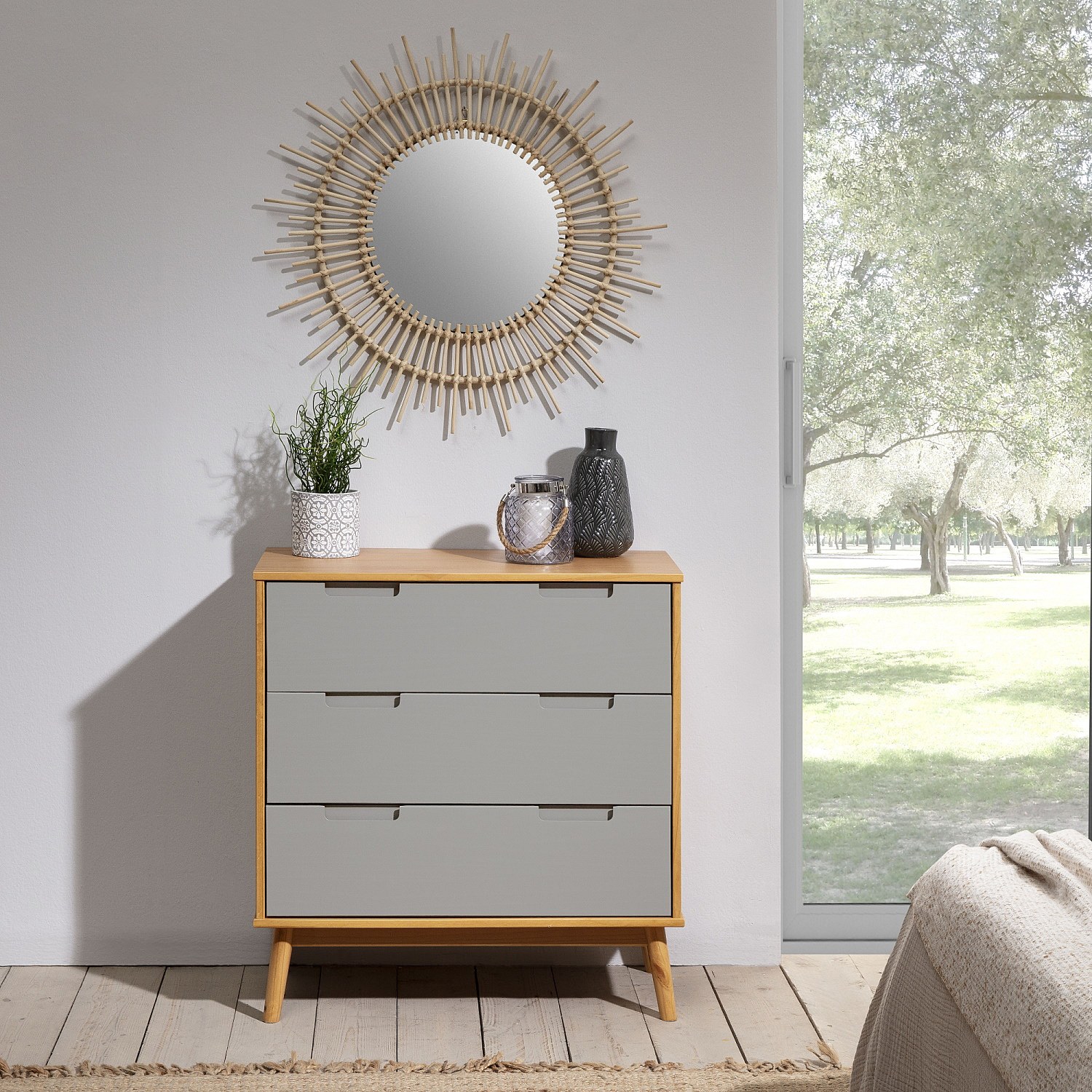 Cómoda de madera de acacia y metal, 3 cajones - Alabama