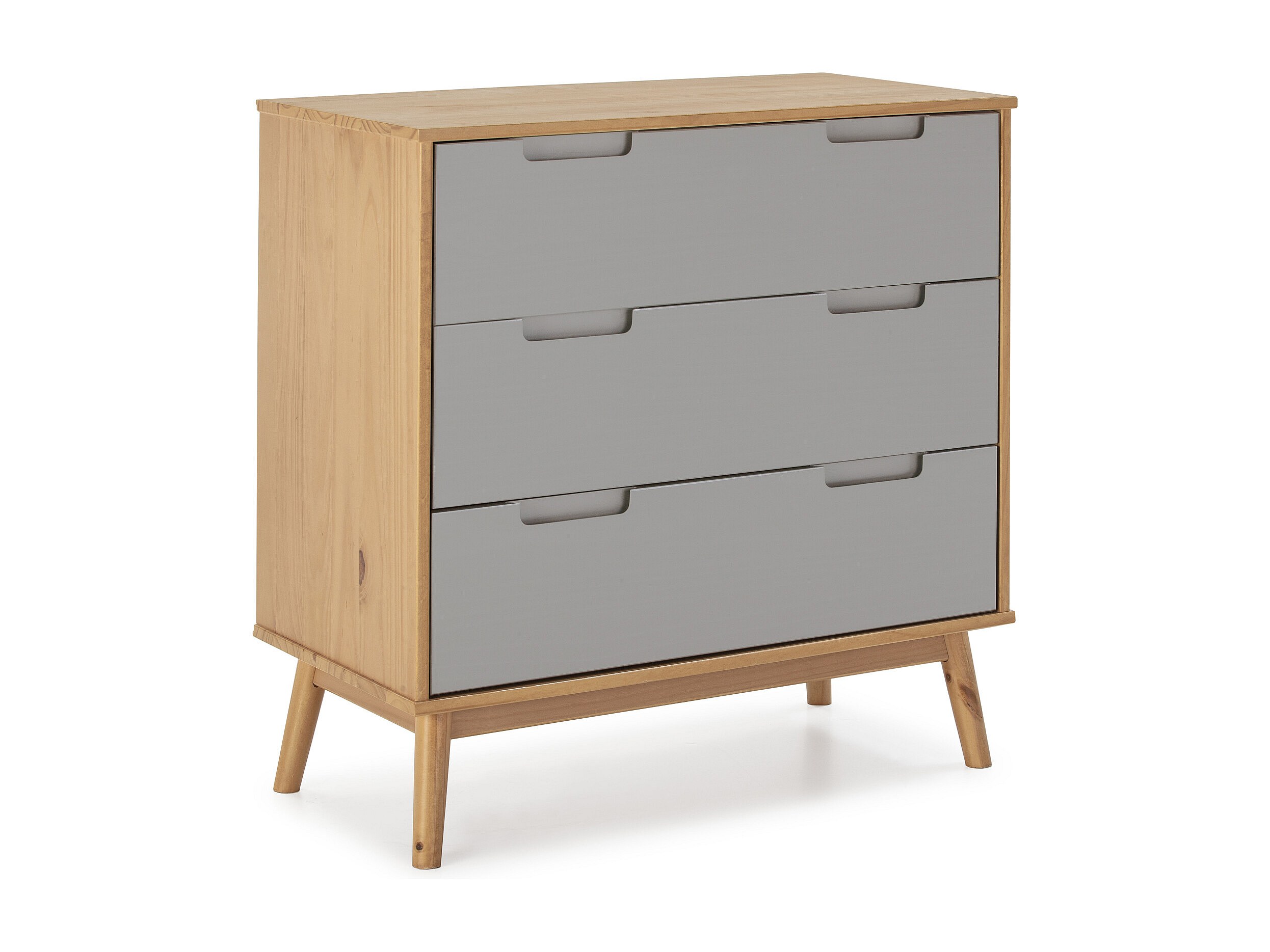 Cómoda de Noche Bali 3C Color Cera, Pino Macizo y Guías metálicas, 80 cm Longitud