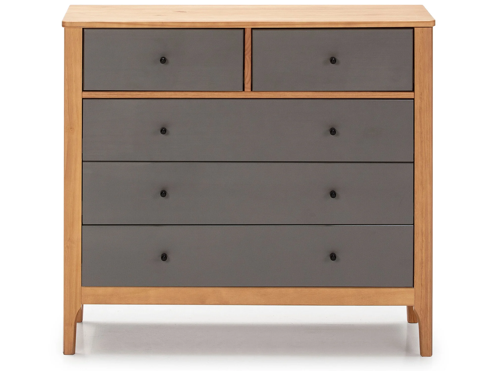 Cómoda de Noche Luca 5 cajones Roble, Madera Maciza, 90 cm (Ancho) 40 cm (Profundo)