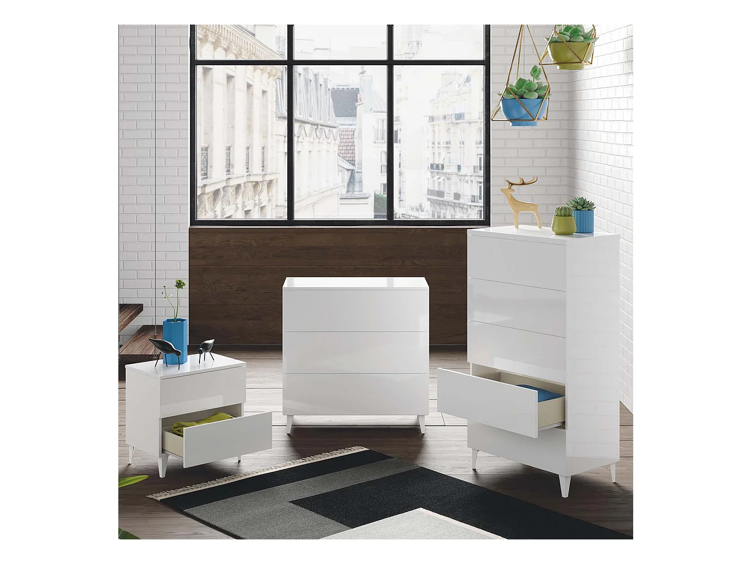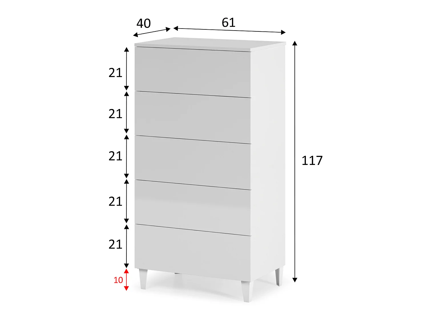 Cómoda de Noche Vera de 5 cajones Color Blanco Brillo, 61 cm (Ancho) 40 cm (Profundo)