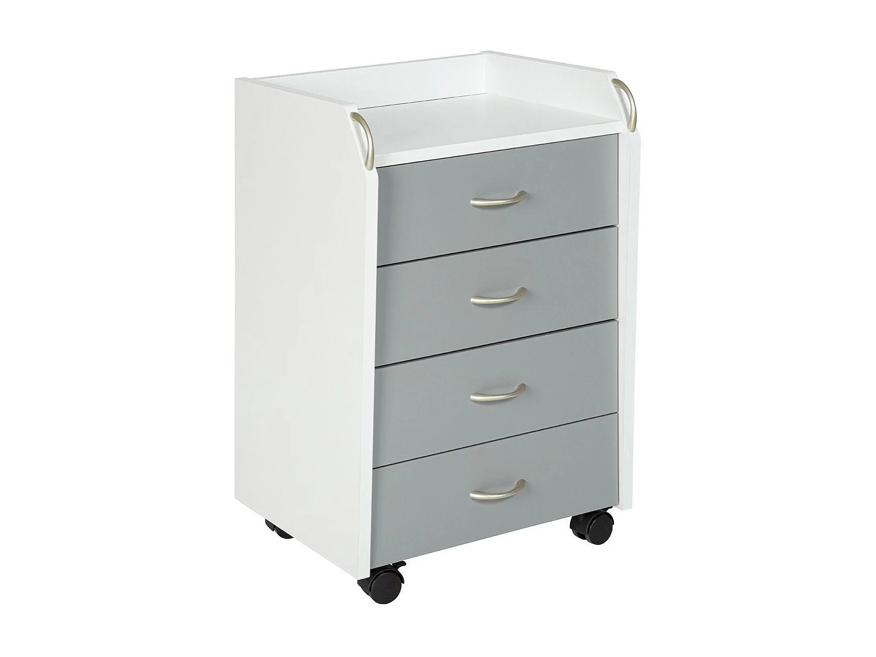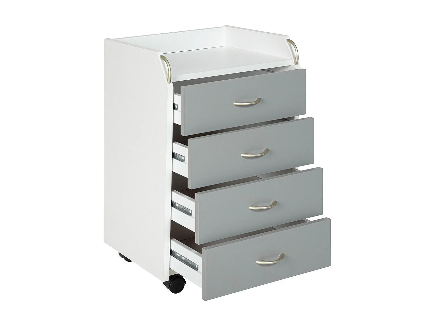 Cómoda de oficina archivo Printi, 6 cajones, 4 ruedas (2 de ellas con topes), color blanco y gris.