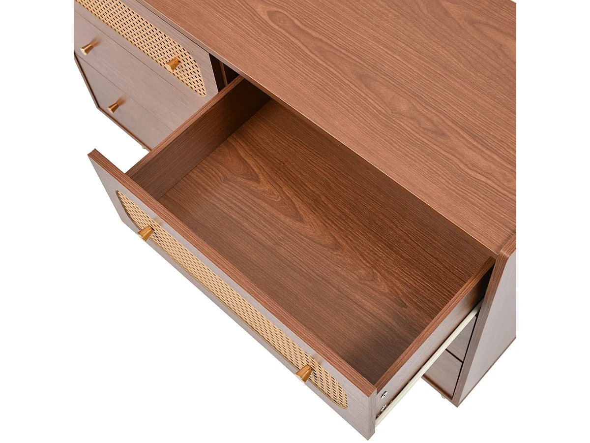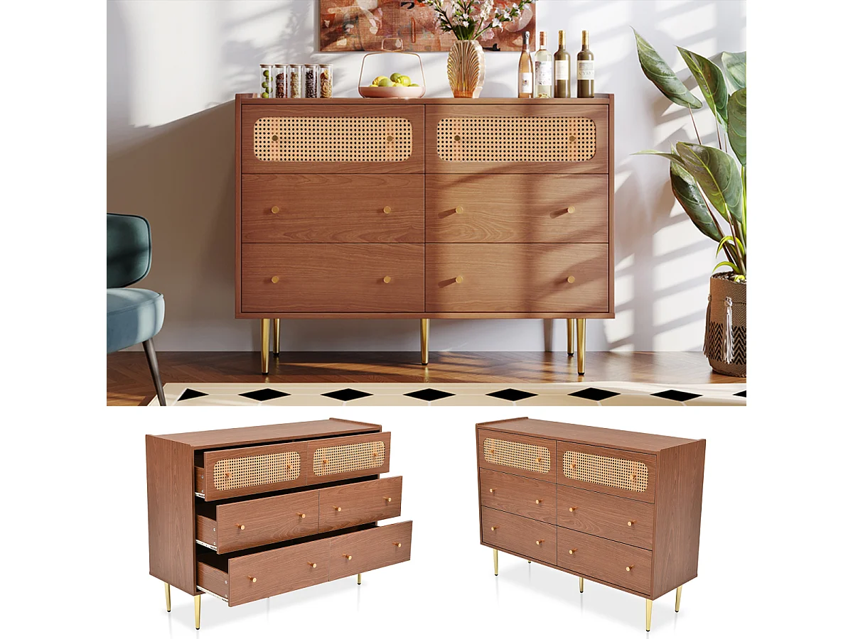 Cómoda de ratán con 6 cajones y aparador alto de nogal (alto 90/ancho 120/profundidad 40 cm)