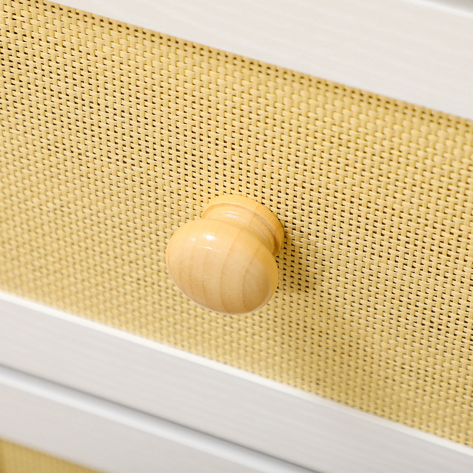 Comoda 4 Cajones Madera Mimbre Blanco Marron 71x51x30