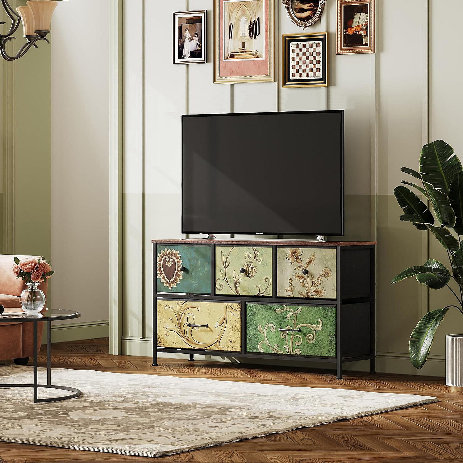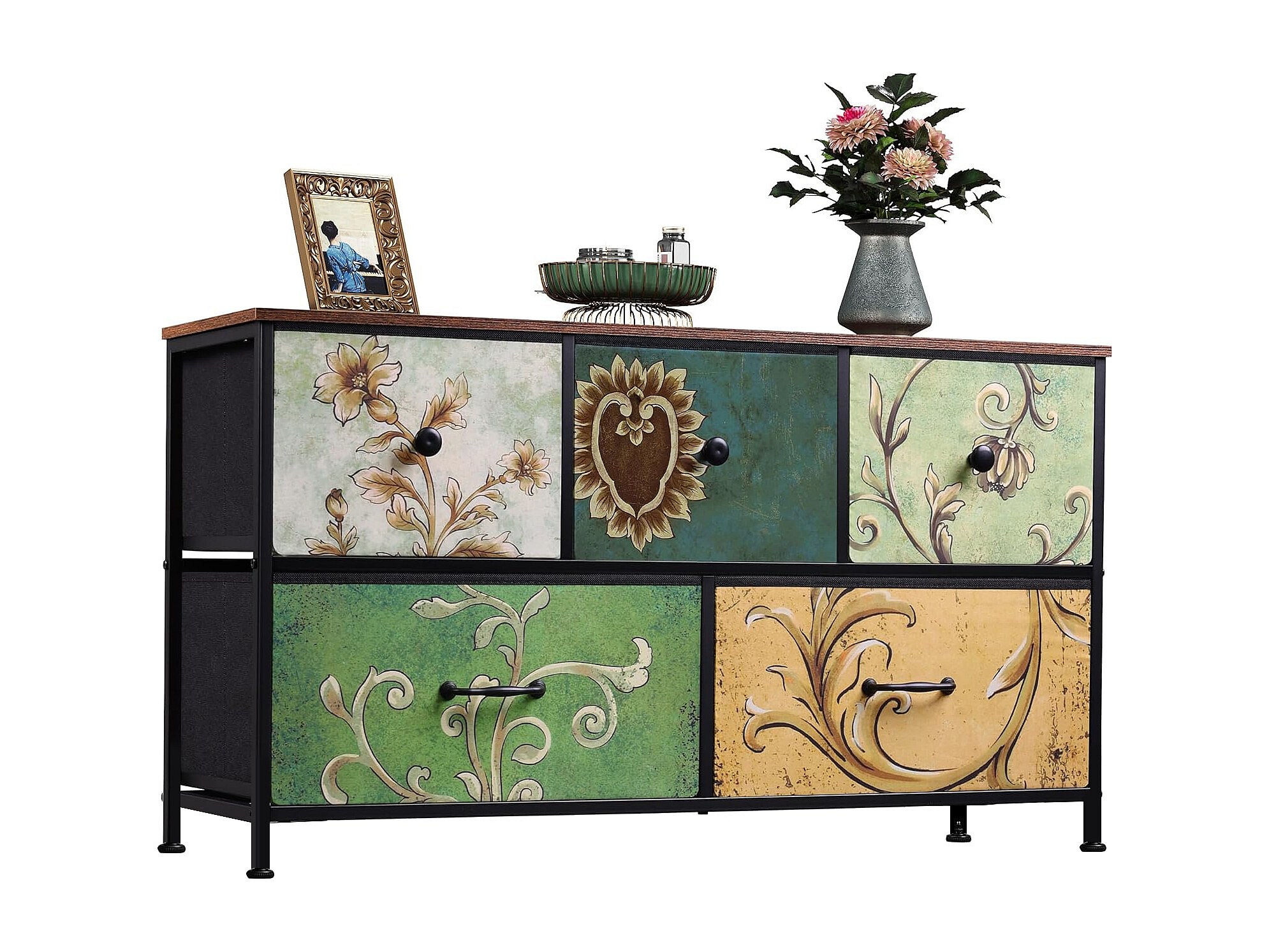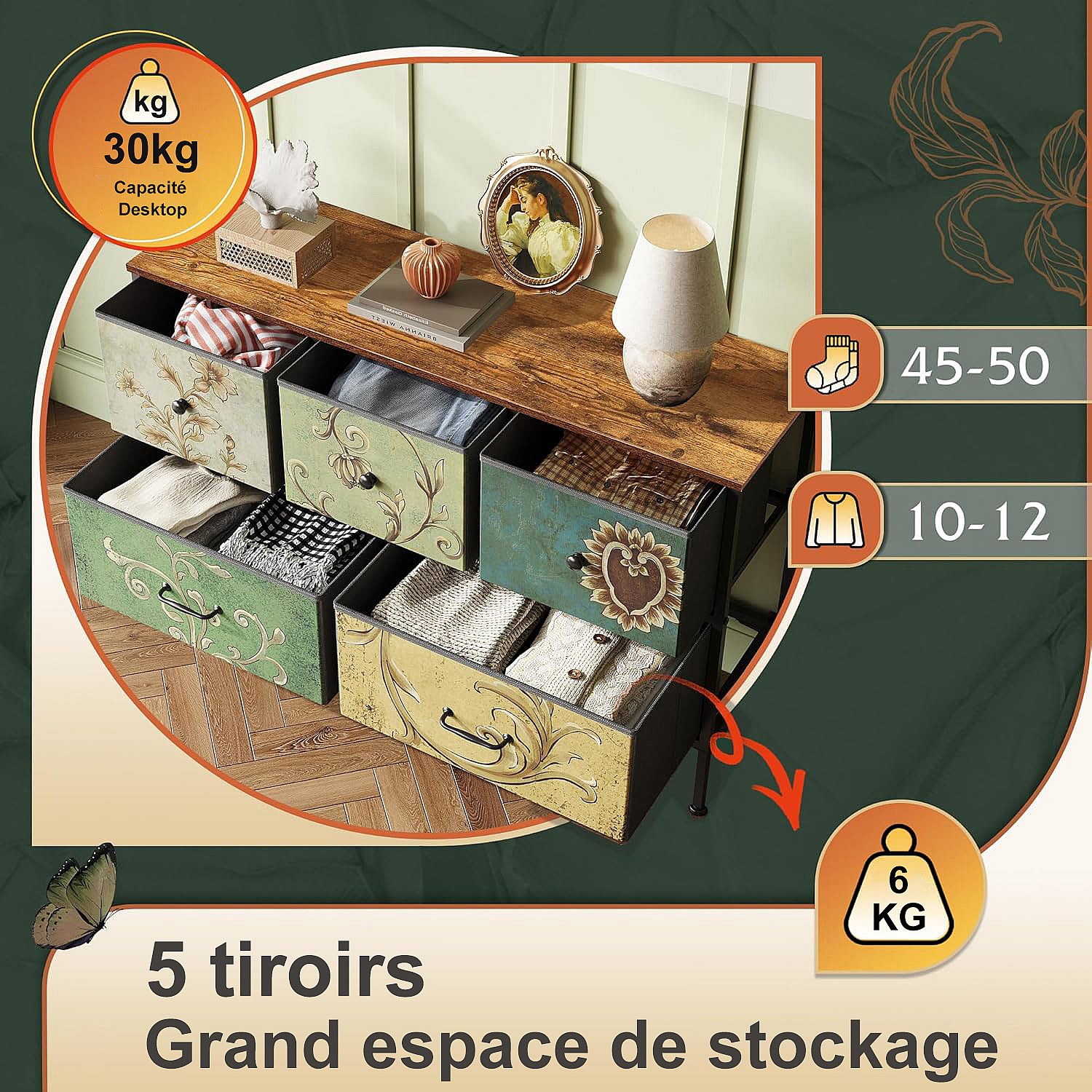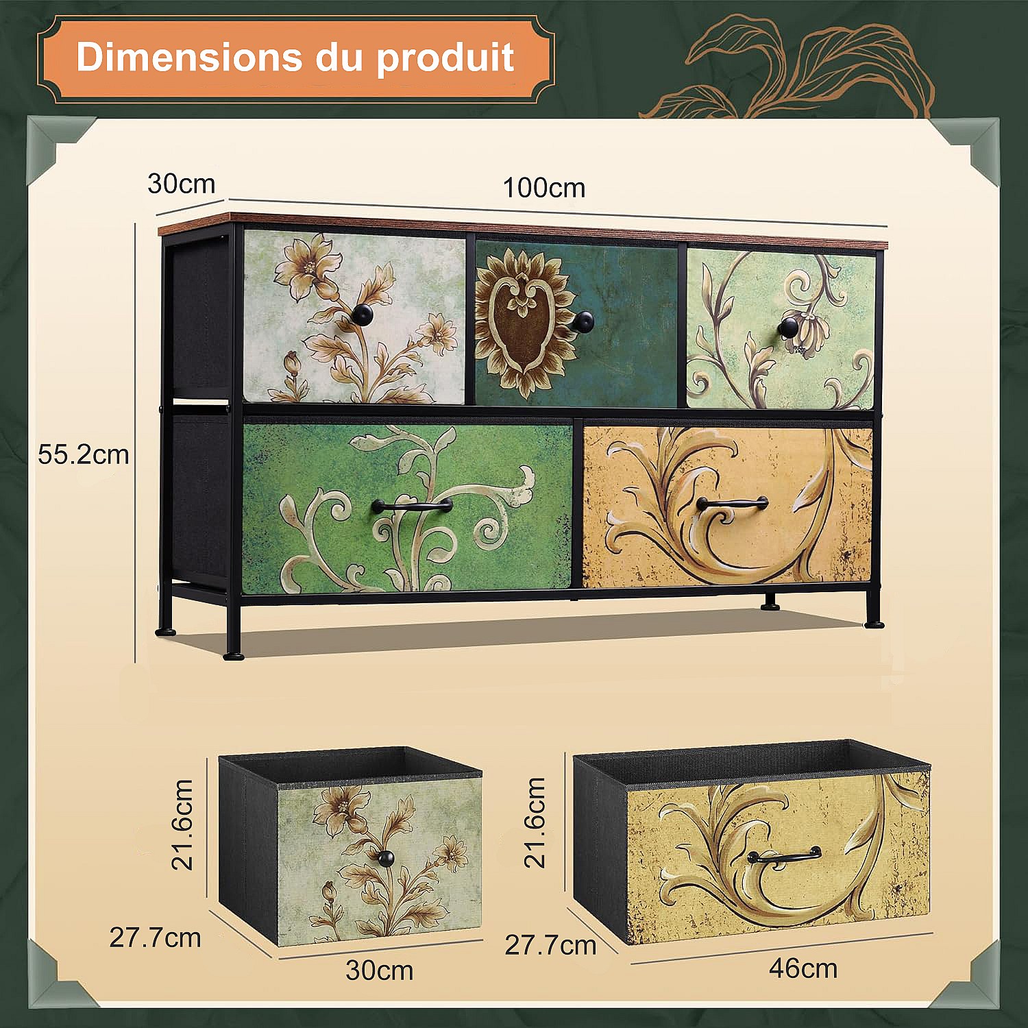 Cómoda de tela con 5 cajones, 100 x 30 x 55 cm - Diseño retro