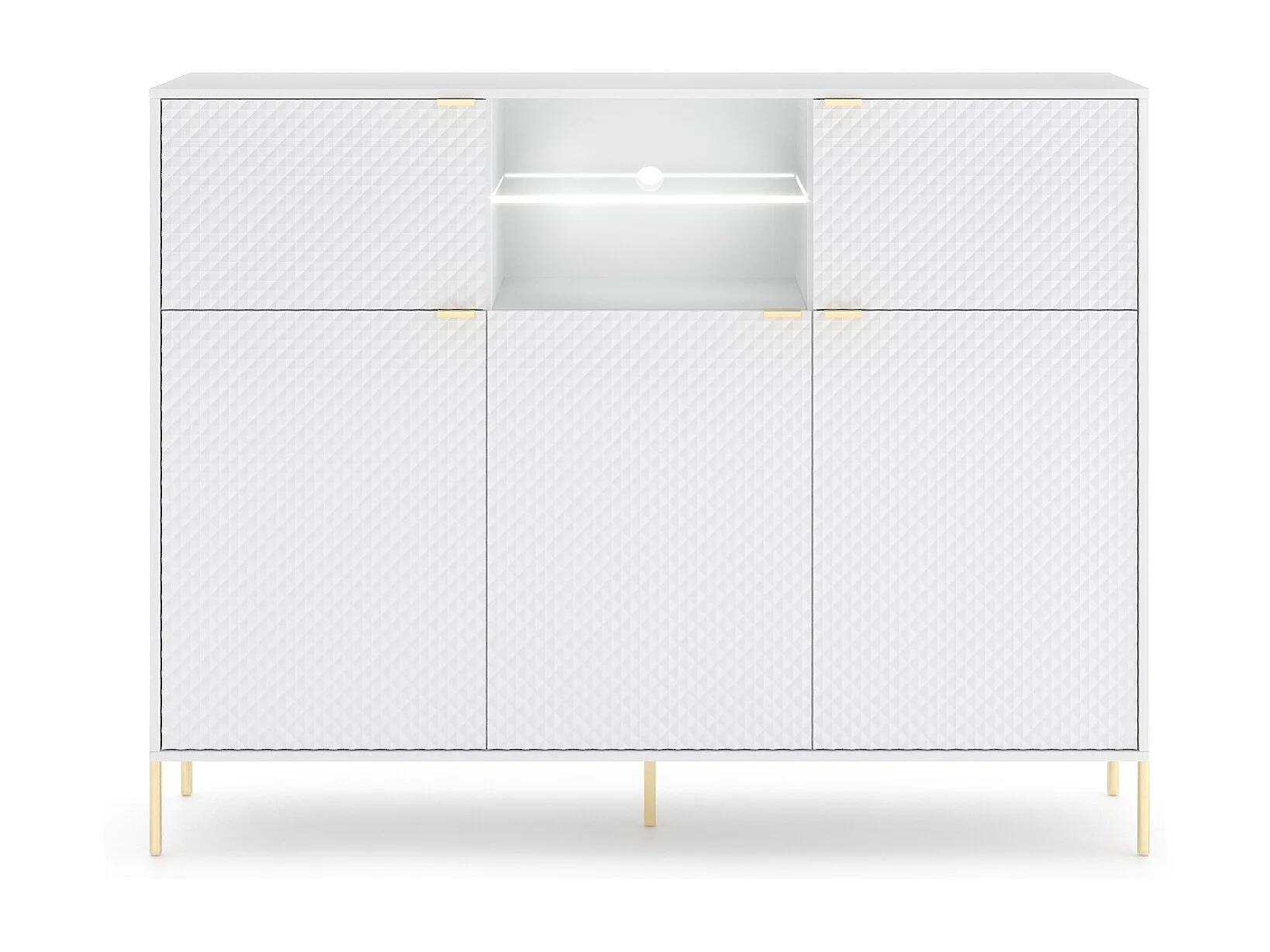 Cómoda Comfivo Delruva 101, Blanco, Con cajones y puertas, 90x153x50cm