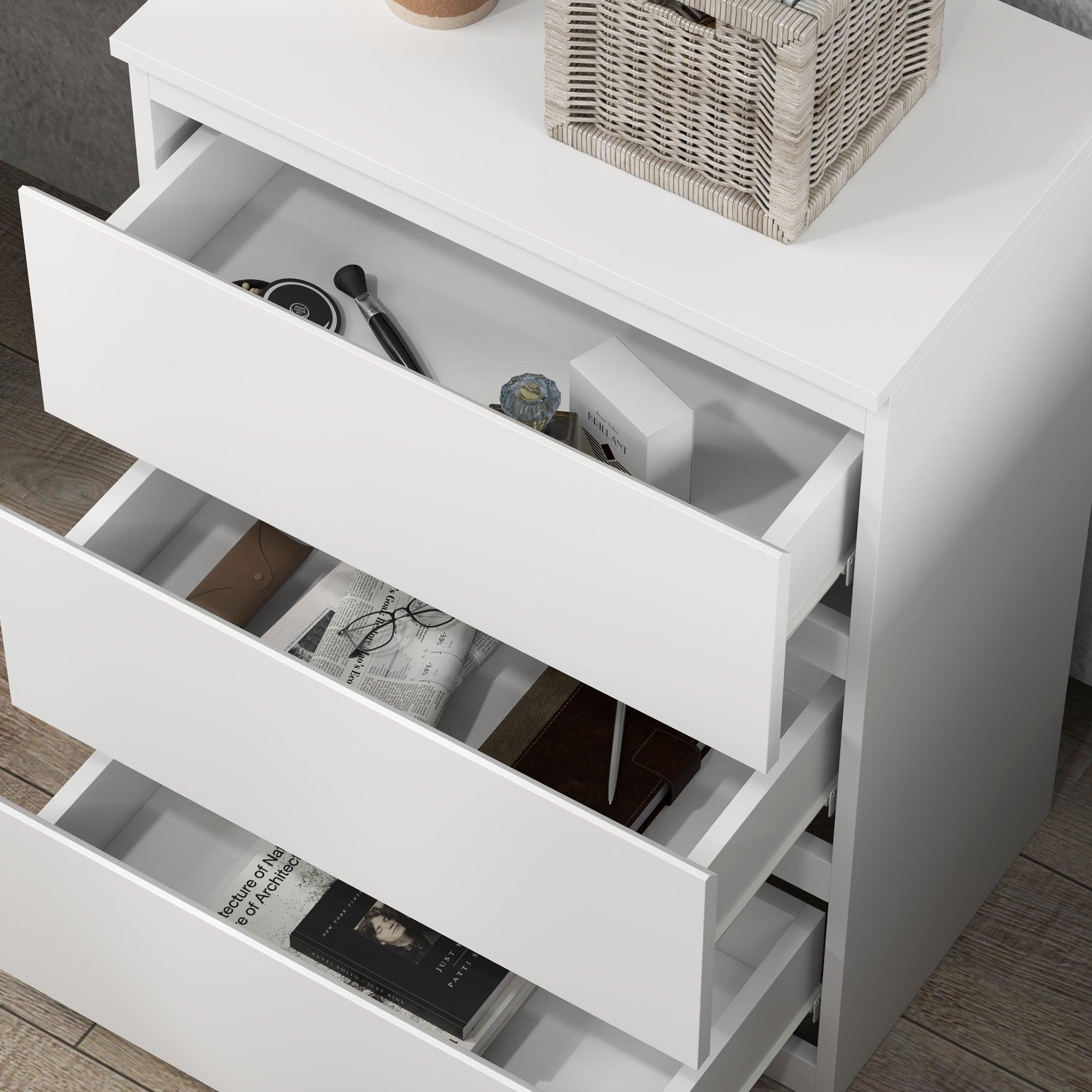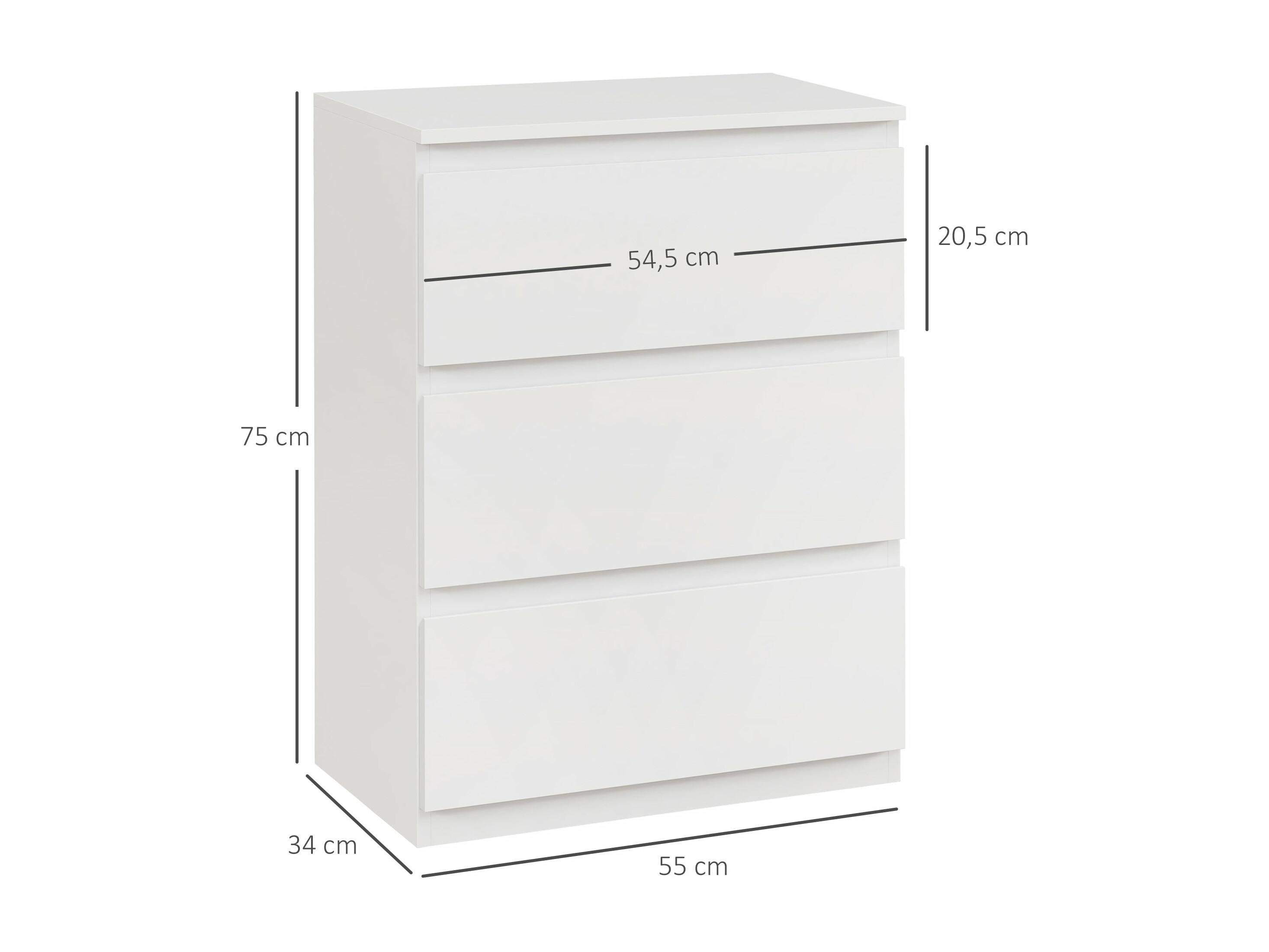 Pon orden con estilo gracias a la cómoda Dinamarca de Homcom. Un mueble moderno, minimalista y muy funcional con tres cajones amplios donde podrás guardar desde pijamas hasta documentos, pasando por juguetes o accesorios. Ideal para dormitorios, vestidores, pasillos o cualquier rincón donde necesites un extra de almacenaje sin renunciar al diseño. Su estructura de melamina de madera en color blanco no solo es resistente, también aporta un toque limpio y elegante que combina con todo. El diseño sin tiradores le da un aire moderno y seguro, ideal para hogares con peques.