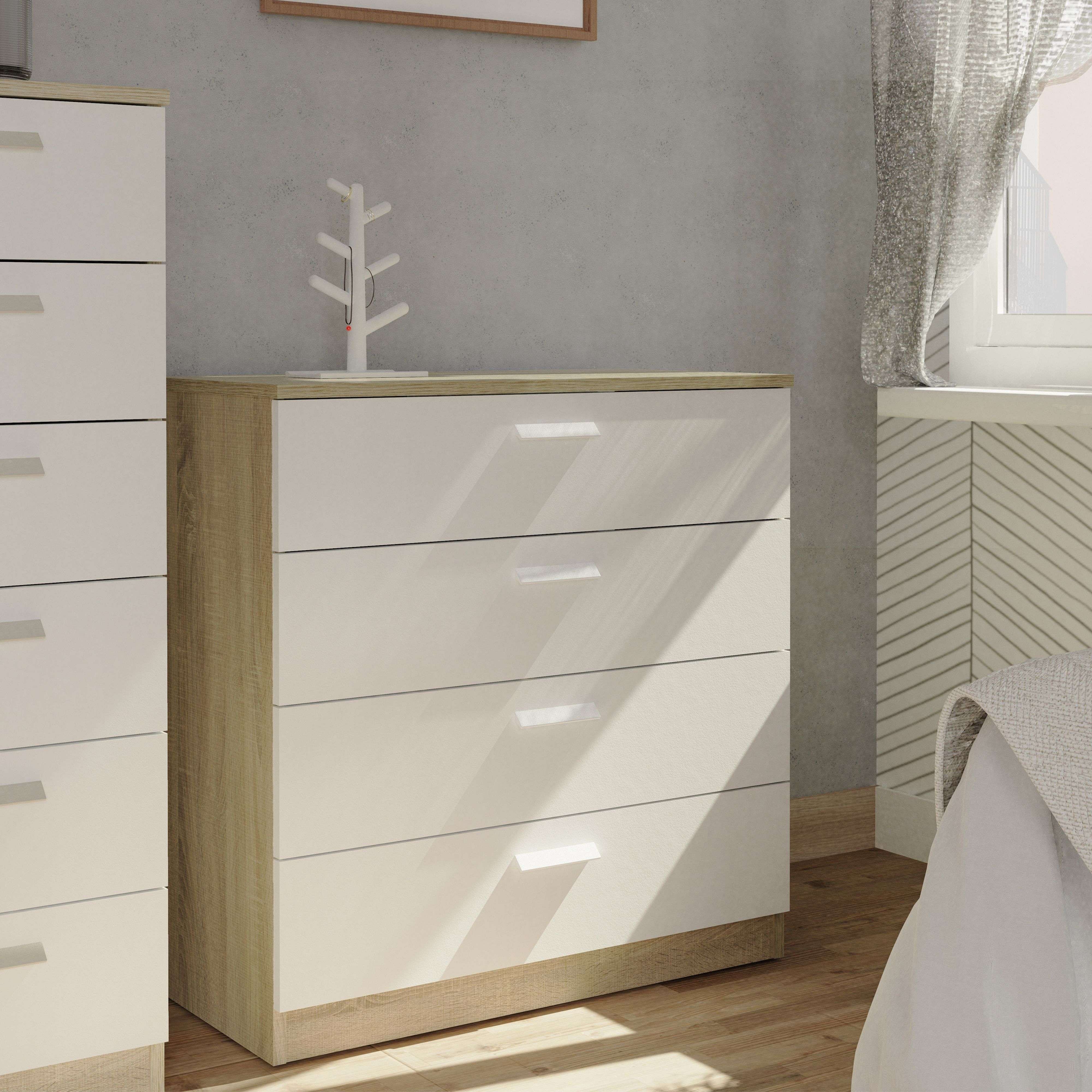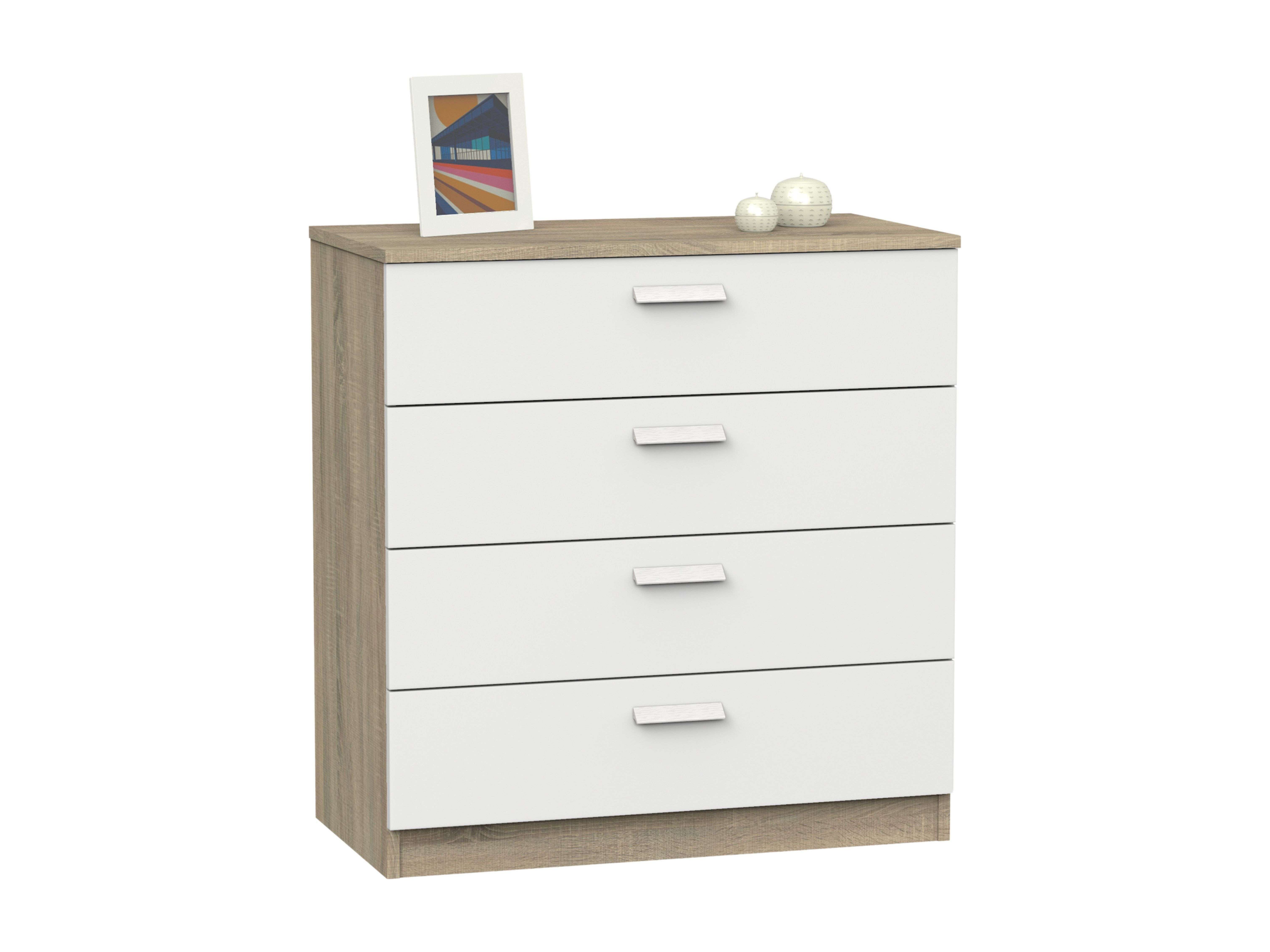 Cómoda 4 Cajones Tibet Blanco Mate/Roble Cambrian 74x78 cm