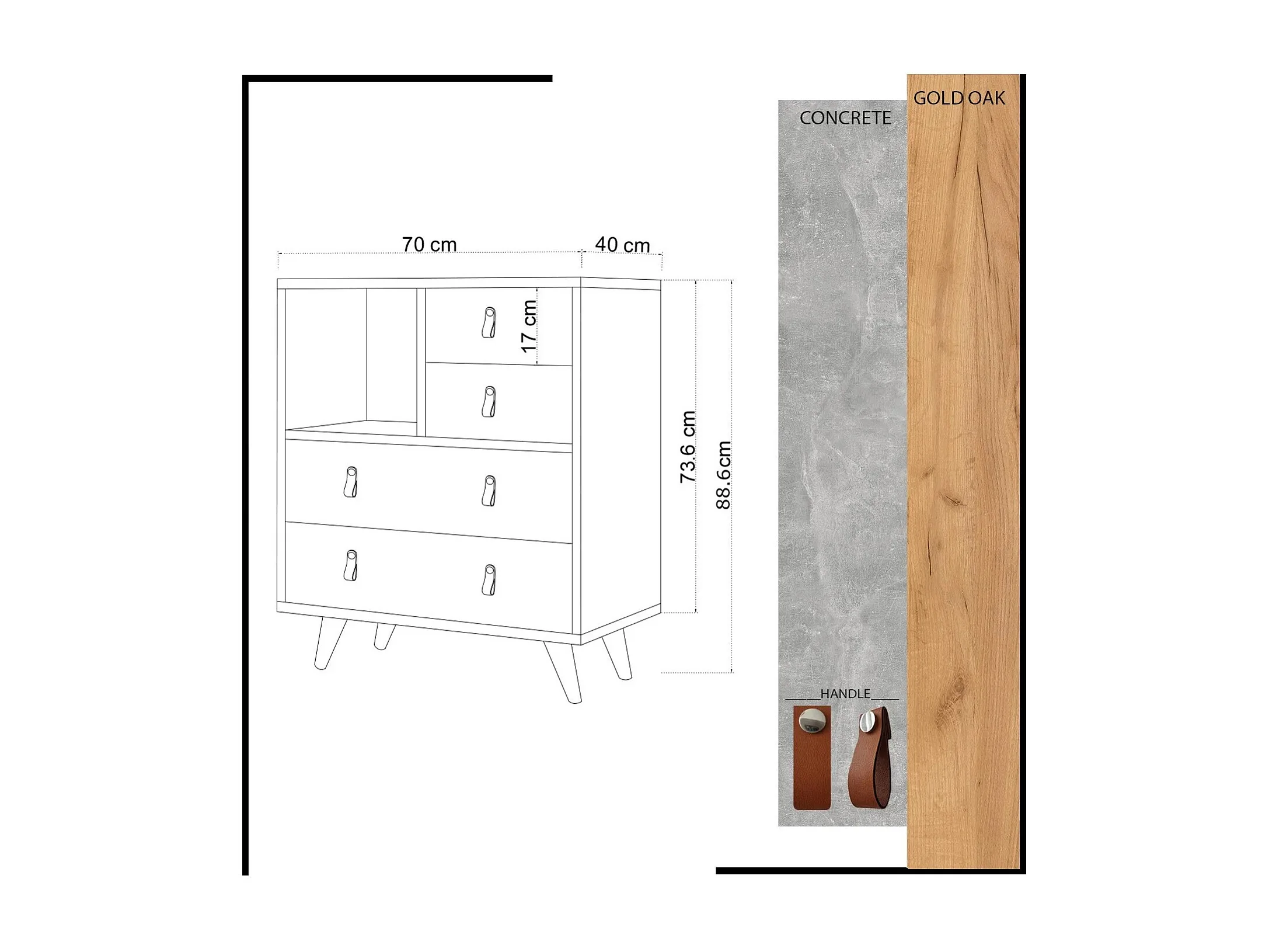 Cómoda ELİN Oro color roble 70x40x88.6 cm
