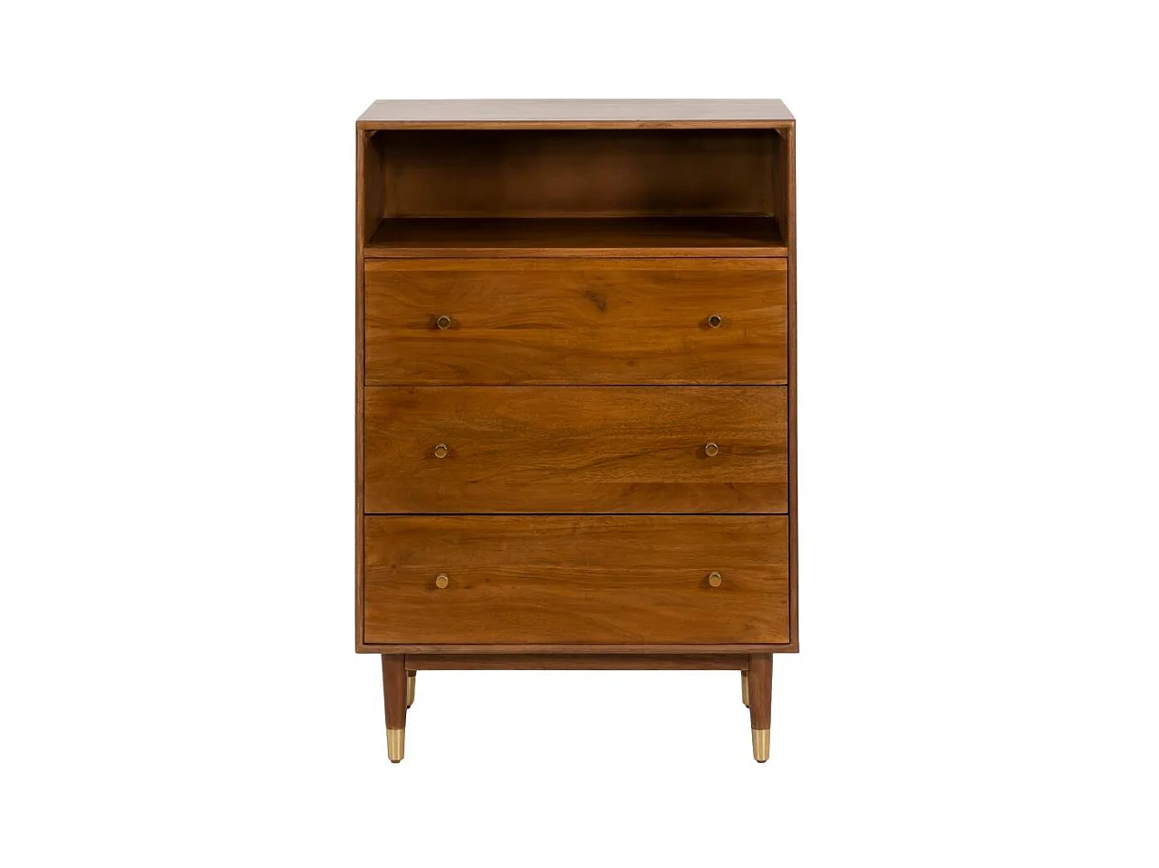Cómoda vintage con 3 cajones de nogal y metal 80,5 cm MANNY