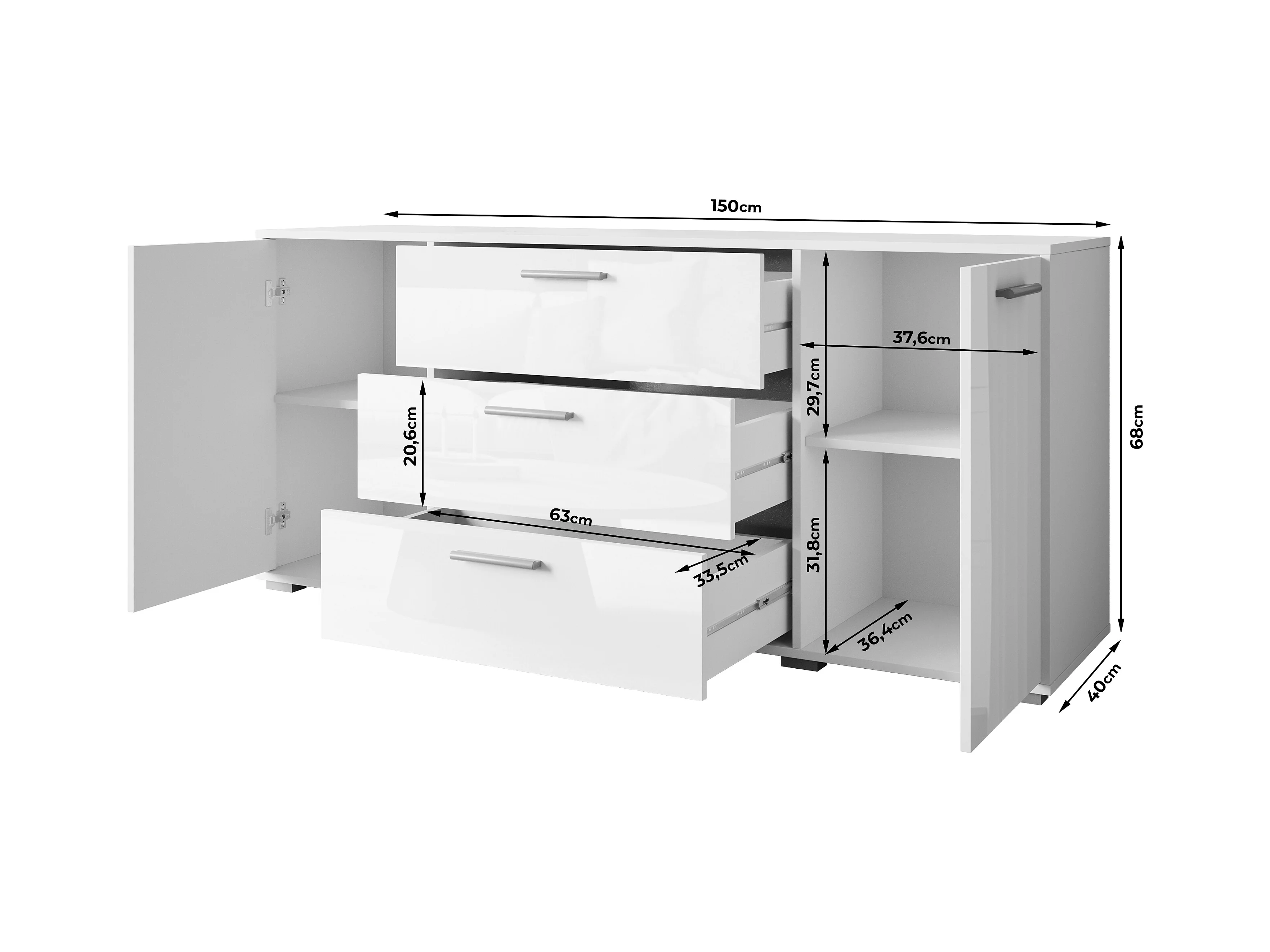 Cómoda espaciosa 150 cm cajones, armario negro grafito